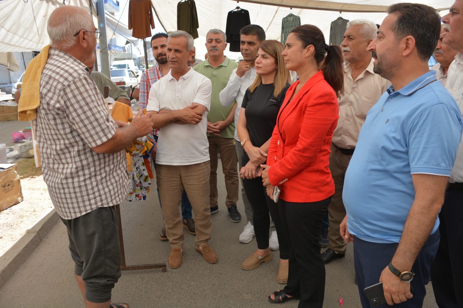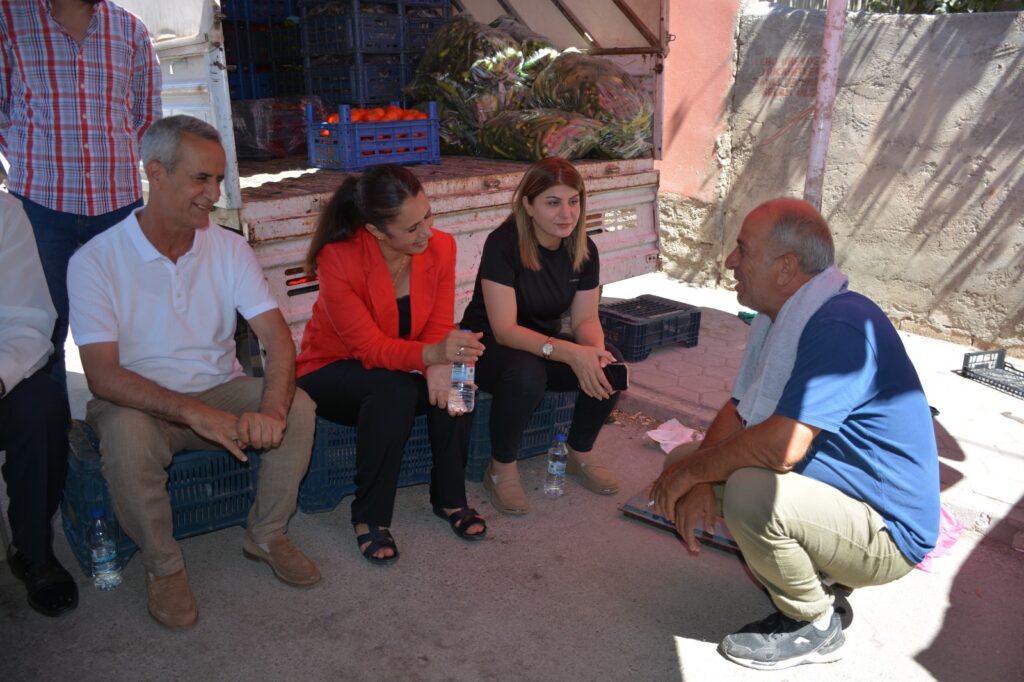 Kızıltepe Belediyesi Eş Başkanları Hamdiye Bilek Turgay ve Zeyni İpek, İpek Mahallesi’nde kurulan sebze ve meyve pazarında tezgâh açan esnafı ziyaret ederek, istek ve taleplerini dinledi.