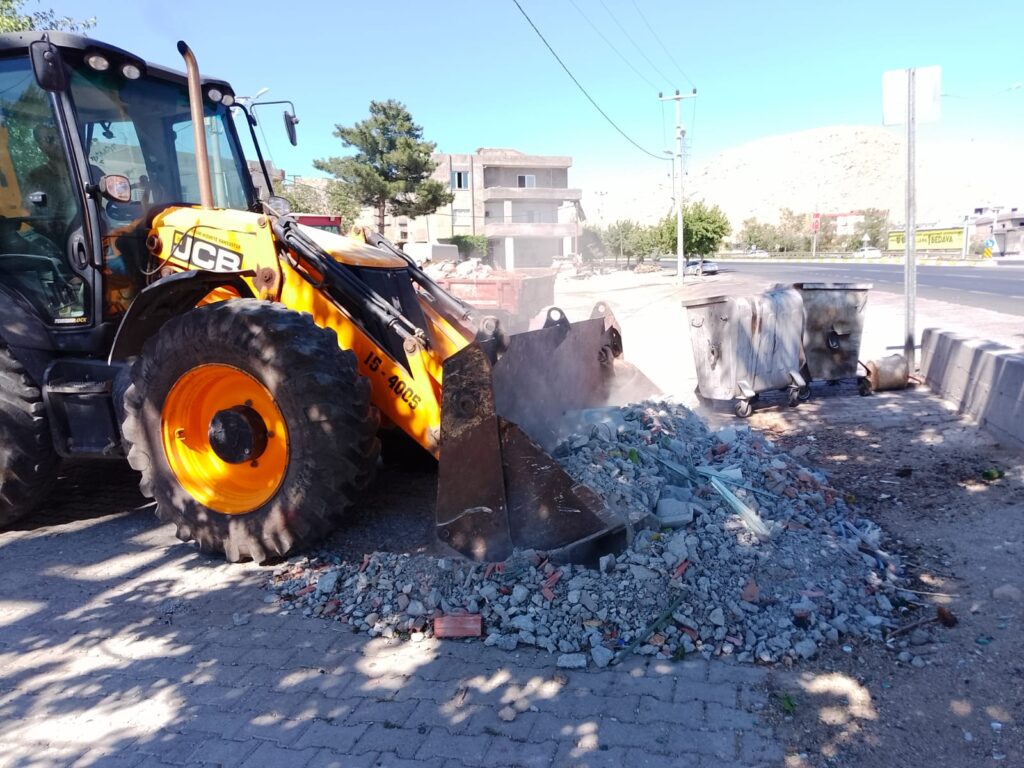 Kent genelinde temizlik çalışmalarını aralıksız sürdüren Mardin Büyükşehir Belediyesi Protokol Yolu üzerinde bulunan çöp ve hafriyat birikintilerini iş makineleri ile temizledi.