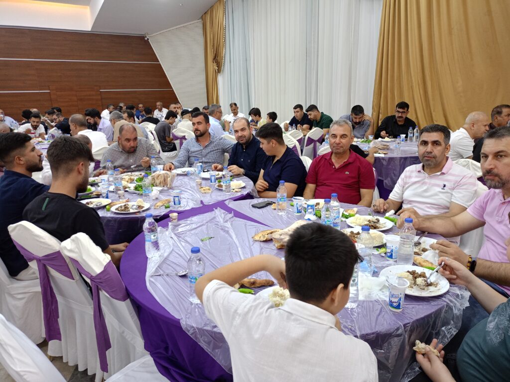 Düğüne iki bini aşan davetli katıldı, kendilerine bölge mutfağının sembolü olan kavurma yemeği ikram edildi. Düğüne iştirak eden davetliler damadın Babası Abdürrahim Ramazanoğlu, amcaları İbrahim Halil Ramazanoğlu, Mahsun Ramazanoğlu, Übeyt Bozan, Orhan Ramazanoğlu tarafından karşılanarak salonda yerlerine davet edildi.