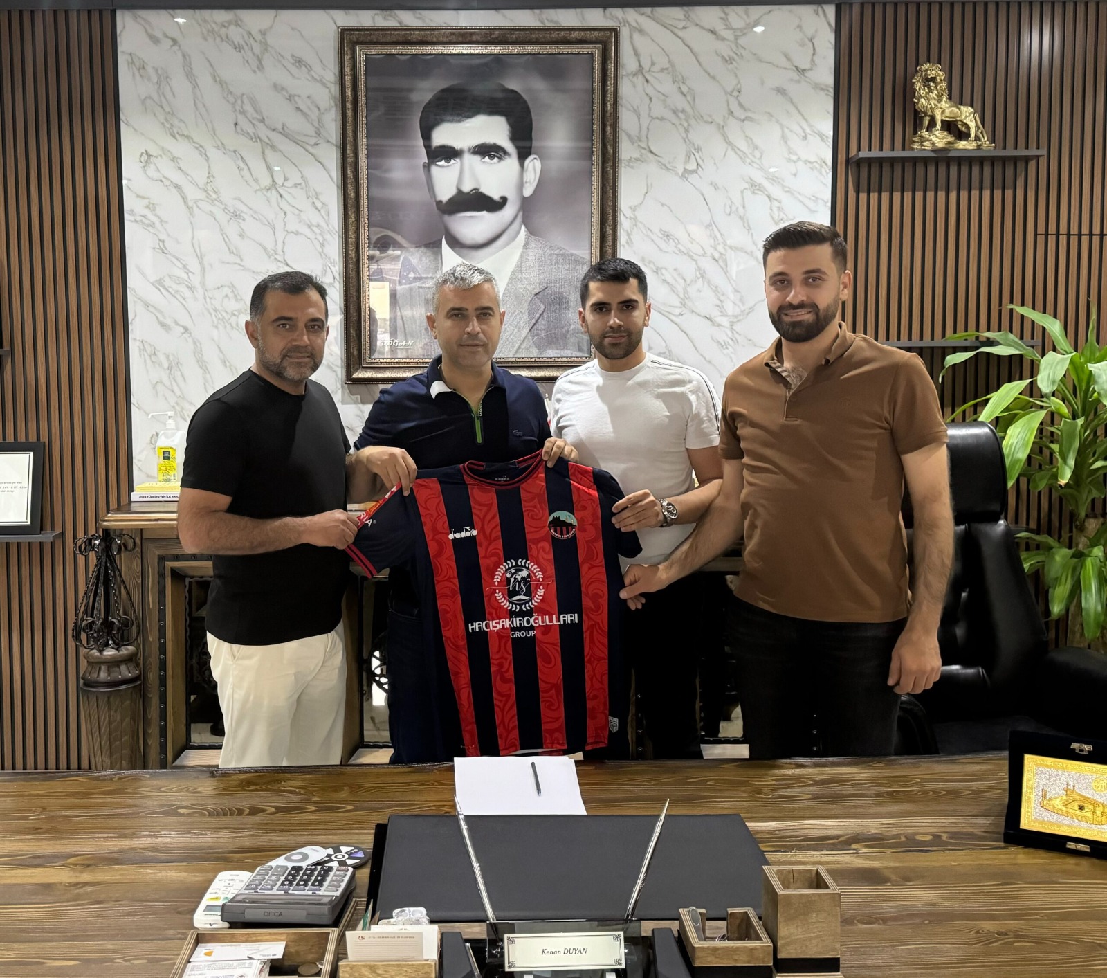 Erzurum’da yeni sezon hazırlık kampını sürdüren takımın her alanda daha güçlü olması, hedeflenen başarıyı elde edip, ligi şampiyonlukla tamamlaması için hiçbir fedakarlıktan kaçınmayan Mardin 1969 Spor Başkanı Rıdvan Aşar, As Başkan Veysi Duyan ile Rıdvan Aktürk, takıma stad isim hakkı sponsorluğuyla destek olan Hacı Şakiroğulları Un Sanayi Sahibi Genç İş İnsanı Kenan Duyan’ı ziyaret ederek, takıma verdiği destekten dolayı Mardin 1969 Spor camiası adına teşekkürlerini ilettiler.