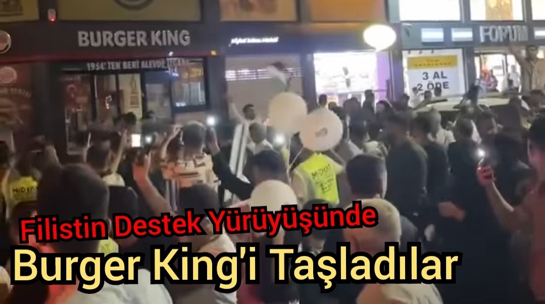 Mardin‘in Midyat ilçesinde Hamas Lideri İsmail Haniyye’nin vasiyeti için sokağa çıkarak, Filistin’e destek yürüyüşü gerçekleştirildi. Yürüyüş sırasında İsrail’e destek verdiği gerekçesiyle Burger King şubesine taşlı saldırı gerçekleştirildi. Yürüyüşe katılanlar şubeye taş ve pet şişeler atarak camlarını kırdı.
