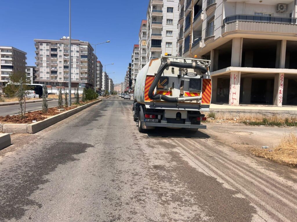 Kızıltepe Belediyesi ile Mardin Büyükşehir Belediyesi Çevre Koruma ve Kontrol Daire Başkanlığı birlikte Yenikent Mahallesi’nde kapsamlı temizlik çalışması yaparak, caddeleri tazyikli suyla yıkadı.