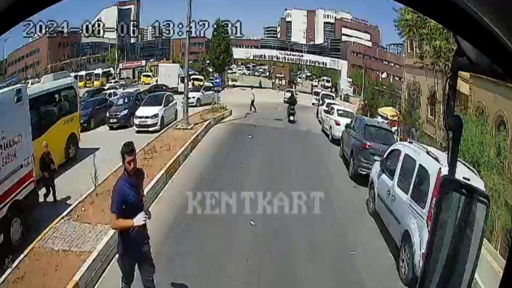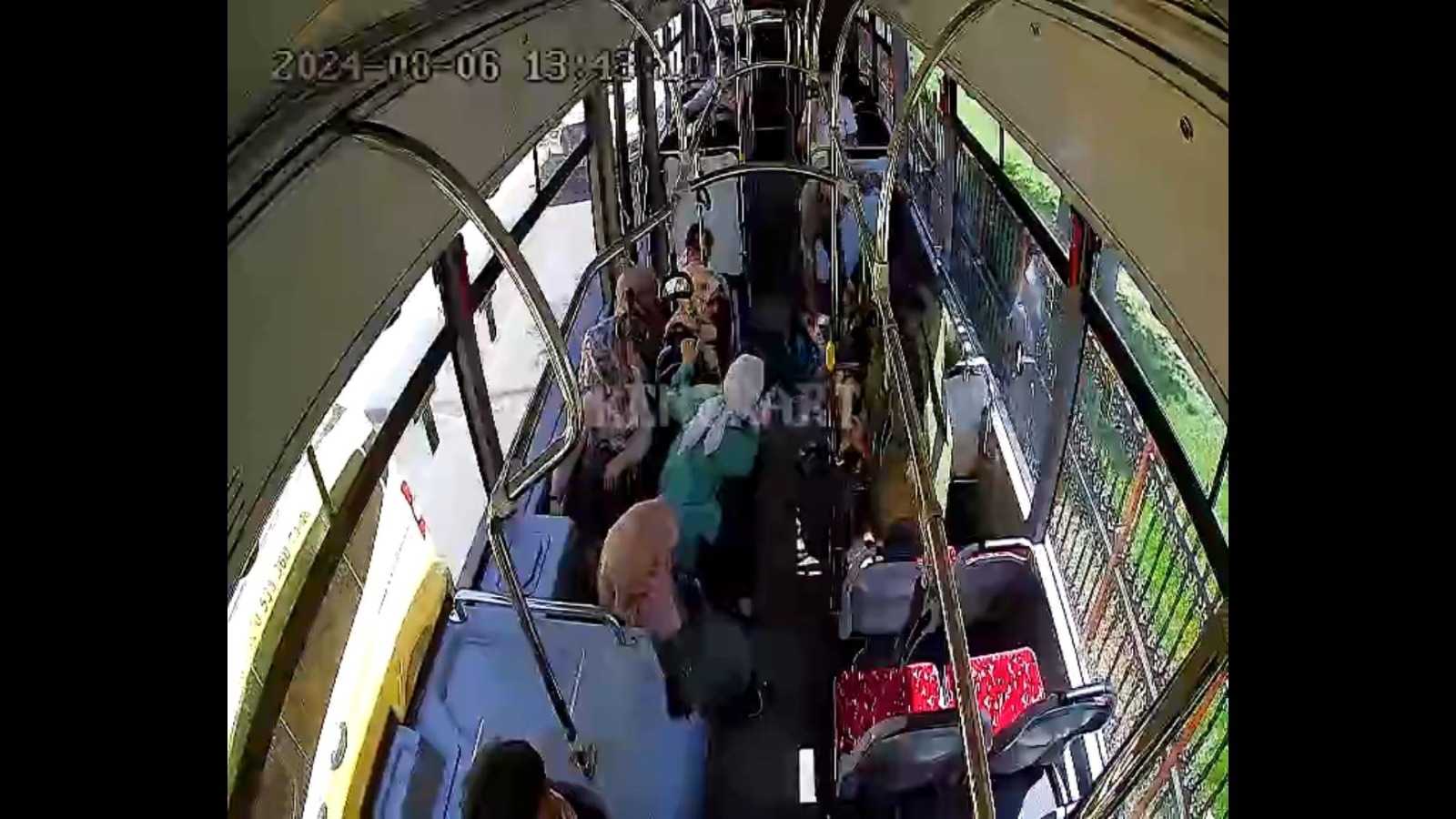 Toplu ulaşım aracı içerisinde yaşanan panik anları güvenlik kamerasına yansıdı.