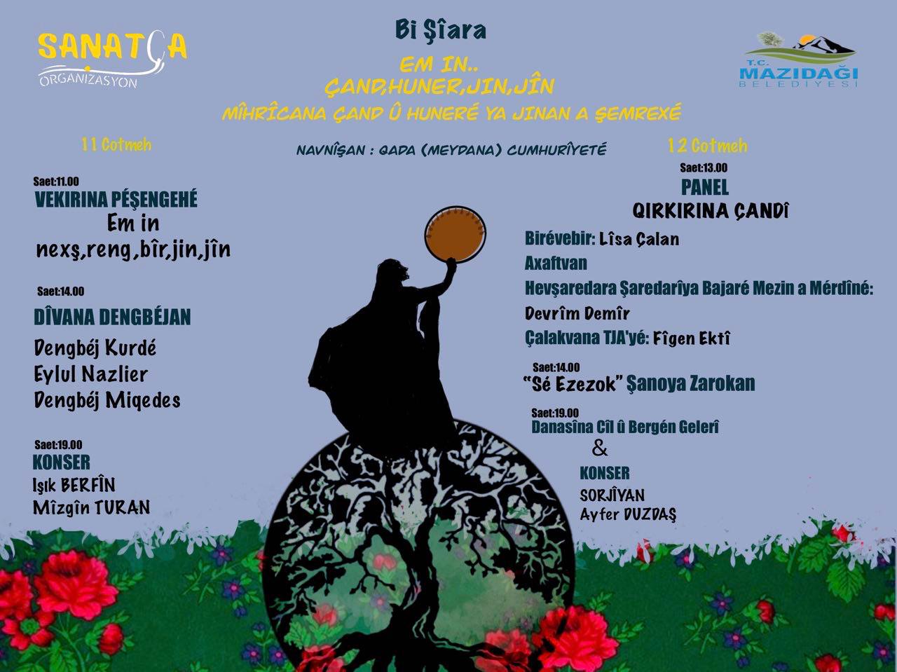 Mazıdağı Belediyesi, Kültür ve Sanat etkinlikleri kapsamında 11-12 Ekim tarihleri arasında 2 gün boyunca sürecek olan Kadın Kültür Sanat Festivali programını açıkladı. Festival kapsamında konser ve çocuk tiyatrosundan, dengbêj divanına kadar birçok sanat dalında etkinlikler düzenlenecek.