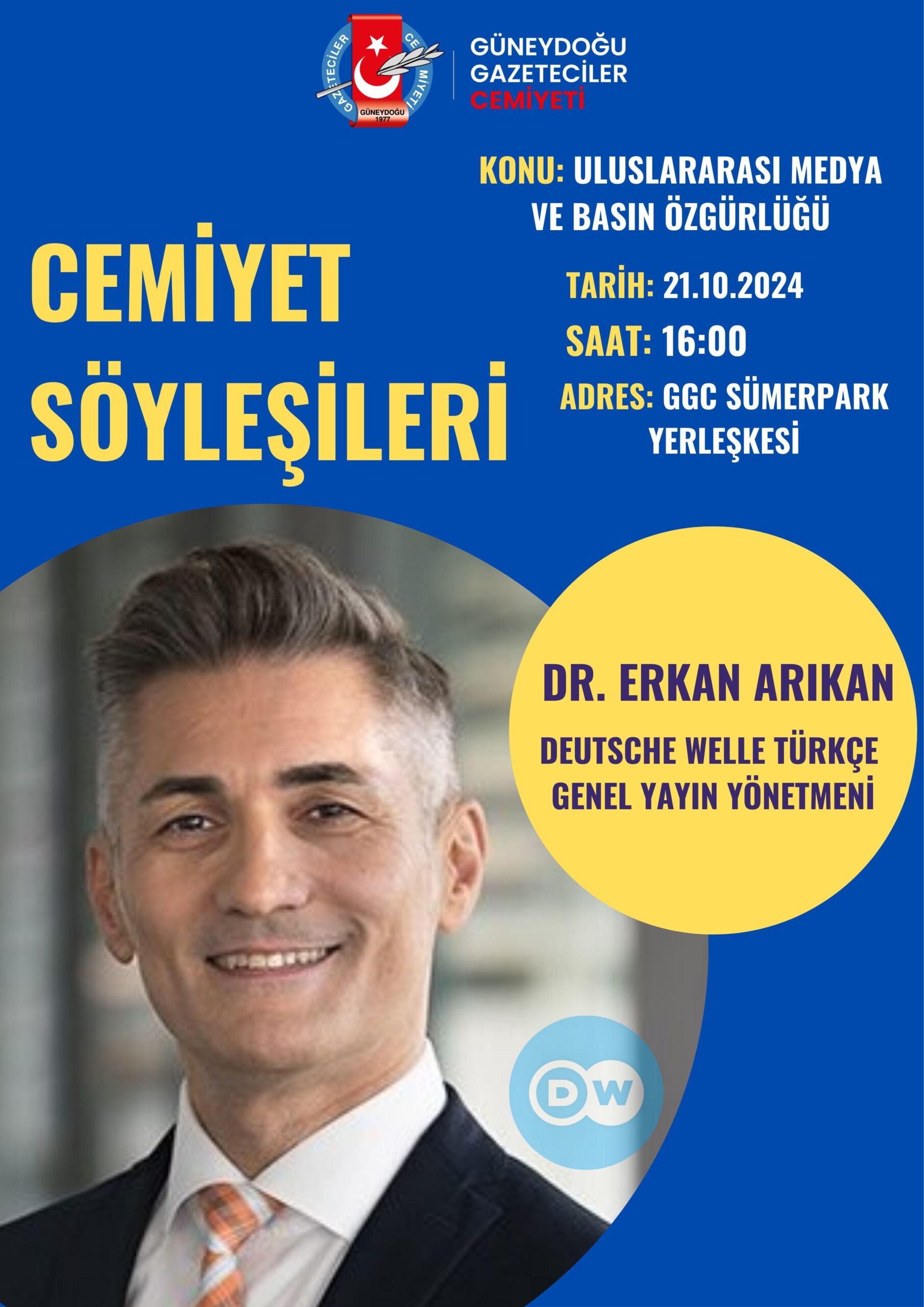 İlk buluşmamızda, uluslararası medya dünyasının önde gelen isimlerinden birini ağırlıyoruz: Deutsche Welle Türkçe Servisi Genel Yayın Yönetmeni Dr. Erkan Arıkan. Sayın Arıkan’ın kısa bir açılış konuşması yapacağı program ağırlıklı olarak soru-cevap ve sohbet formatında geçecek.