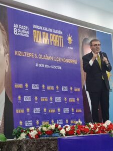 Bugün Mardin’imizin en büyük İlçesi ve benimde doğduğum büyüdüğüm Kızıltepe İlçemizin kongresini gerçekleştiriyoruz. Buradan AK Partimizin devam eden bütün ilçe kongrelerinde emek harcayan, memleket sevdasıyla akıl teri, alın teri döken bütün kardeşlerimize selamlarımızı gönderiyoruz.