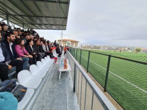Mazıdağı Belediye Eş Başkanları Kudret Uçuk ve Hamdin Demir, Mazıdağı Belediye Spor ile Nusaybin Belediye Spor arasında Nusaybin’de oynanan maçı tribünde izleyerek katılım sağladı. Eş Başkanlar Uçuk ve Demir, Nusaybin’de oynanan maça Nusaybin Belediye Eş Başkanı Gülbin Şahin Dağhan ile beraber taraftarla bir araya gelerek tribünde beraber izledi. Maç sırasında taraftarlarla sohbet eden Eş Başkanlar “Spor kardeşlik ve barıştır. Bizim için kimin kazandığı önemli değildir. Bizler bu kardeşliği erek sahada ve gerek saha dışında da her zaman yaşatmalıyız. Yapılacak bu maçta her iki takıma başarılar dileriz” şeklinde konuştu.