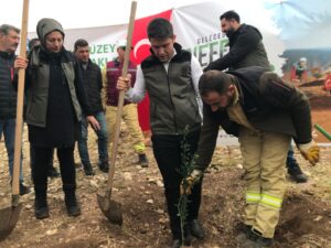 Orman İşletme Müdürlüğü’ne bağlı Ağaçlandırma şefi Aydın Kabay,”Bugün ormanımızda 2300 yerli halhali zeytin fidanı dikimine başladık,hedefimiz 58 dönümlük orman arazimizde bu yılın sonuna kadar 10 bin zeytin fidanı dikimini gerçekleştireceğiz.”dedi.