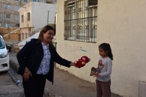 20 Kasım Çocuk Hakları Günü dolayısıyla çocuklarla bir araya gelen Derik Belediye Eş Başkanı Songül Özbahçeci ilçe merkezine çıkarak çocuklarla bir araya gelerek onları mutlu etmek için oyuncak hediye etti. Çocuklar aldıkları oyuncaklarla mutlu olurken, Eş Başkana bu duyarlılığı için teşekkür ettiler.