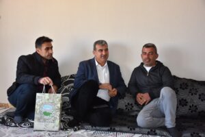 Hane ziyaretlerinde bulunan Derik Belediye Eş Başkanı Cengiz Temelli , Belediye Meclis üyesi ve Kültür ve Sosyal İşler Müdürlüğü’ne bağlı engelli birimi ile birlikte ziyaret ettiği özel bireylere hediye vererek sorun ve sıkıntılarını tek tek not alarak kısa zamanda çözüme kavuşturulması konusunda ilgili birime ilettildi.