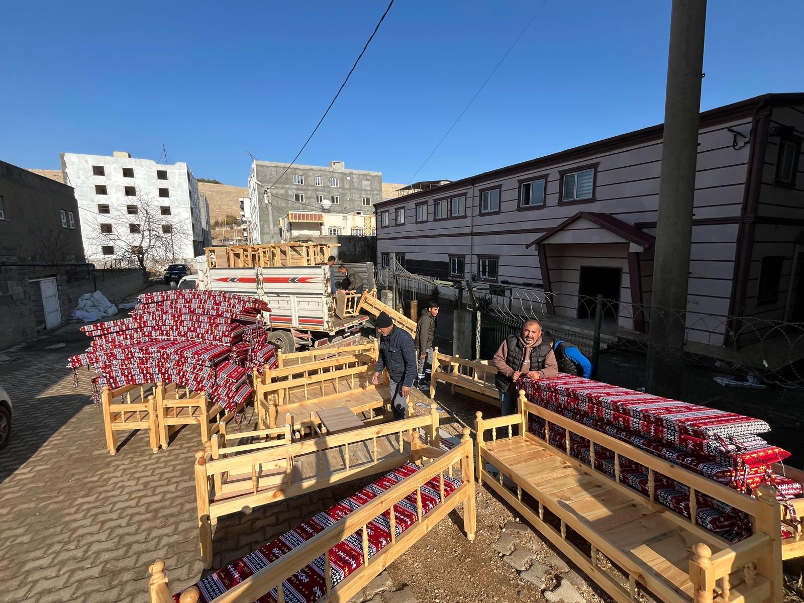 Mazıdağı Belediyesi, ilçe genelinde sedir ihtiyacı olan Taziye evleri için hazırladığı 470 sehpa, 250 sedir, 500 minder ve 8 imam masası malzemelerinin dağıtımına başladı