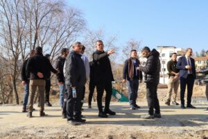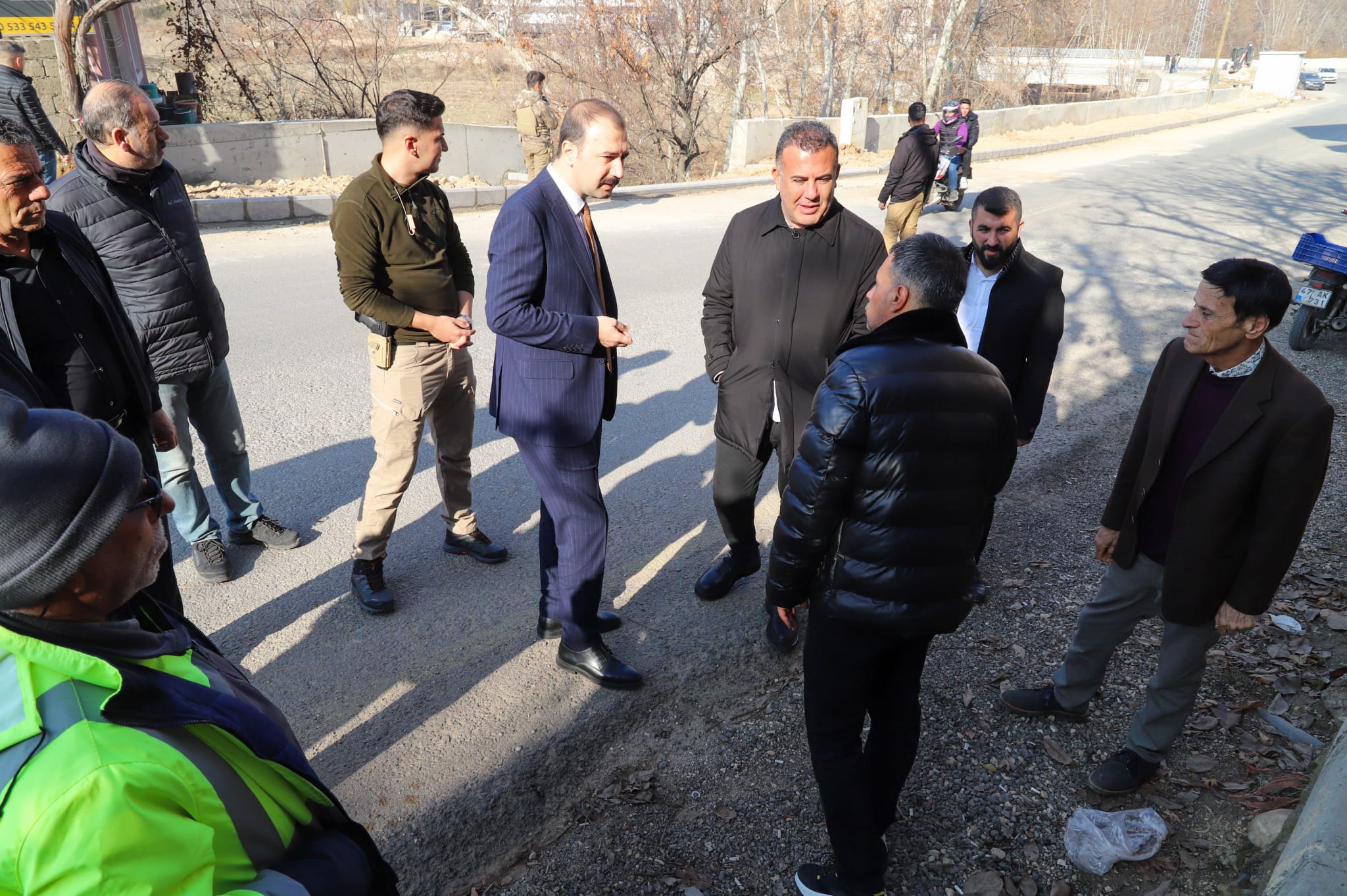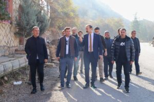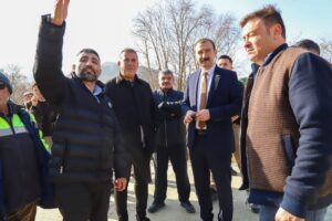 Kaymakam Çevik ile Başkan Hamidi, Karayolları ekiplerinin sürdürdüğü köprü ve orta refüj kaldırım çalışmalarını yakından takip ederek yetkililerden bilgi aldı.