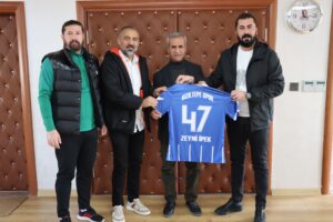 Ziyaretin ardından Eş Başkan İpek’e isminin üzerinde bulunduğu 47 numaralı forma hediye edildi.
