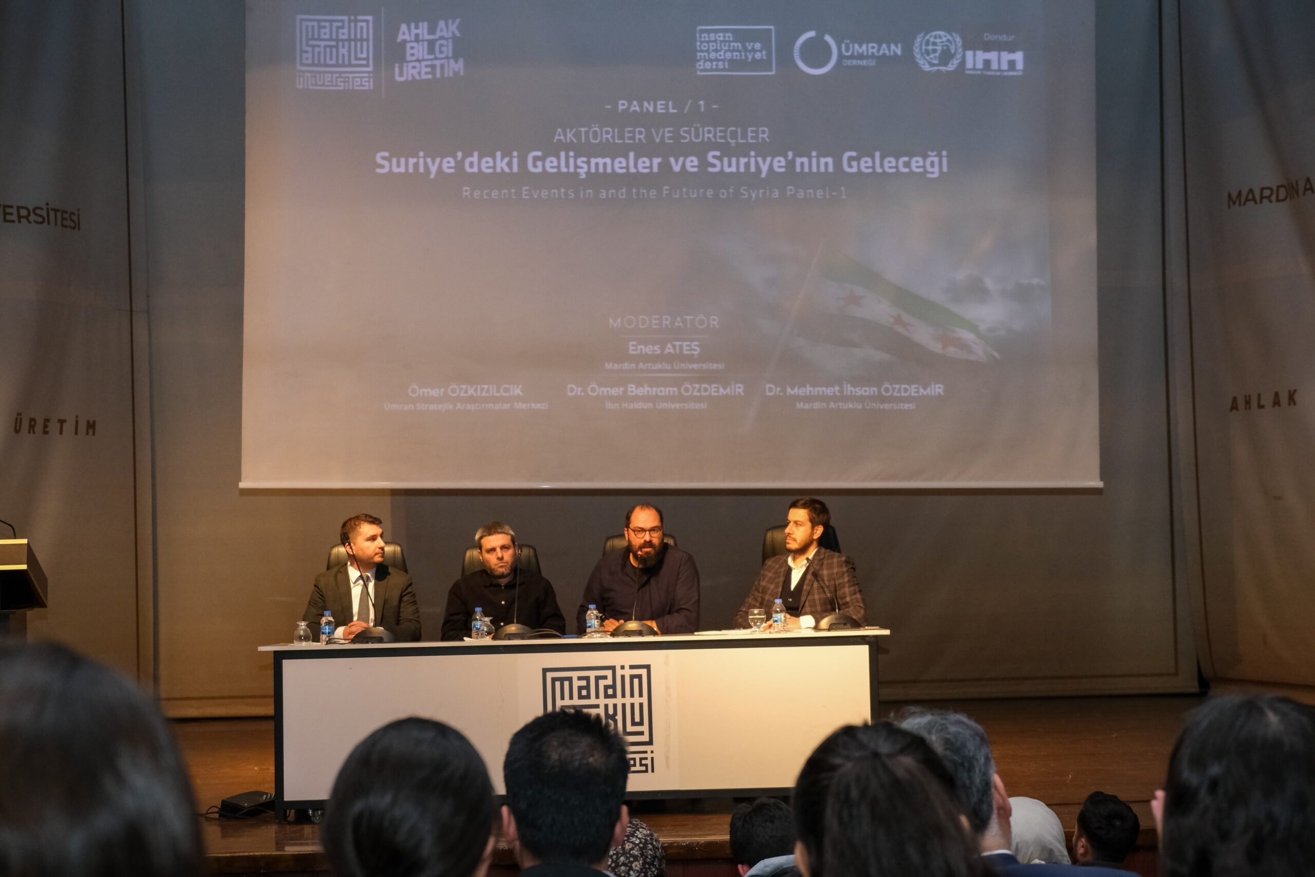 Moderatörlüğünü Mardin Artuklu Üniversitesi Enes Ateş’in yaptığı “Suriye’deki Gelişmeler ve Suriye’nin Geleceği” paneline; Ümran Stratejik Araştırmalar Merkezi’nden Ömer Özkızılcık, İbn Haldun Üniversitesi’nden Dr. Ömer Behram Özdemir ve Mardin Artuklu Üniversitesi’nden Dr. Mehmet İhsan Özdemir panelist olarak katıldı.