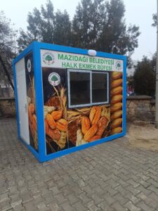 Mazıdağı Beledi Eşbaşkanları Kudret Uçuk ve Hamdin Demir’in seçim vaadlerinden biri olan Halk Ekmek Fırını’nın önümüzdeki günlerde faaliyete geçmesi beklenilirken ekmek satışlarının yapılacağı büfeler ilçede belirlenen noktalara bırakıldı. Mazıdağı Belediyesi tarafından ilçede fırında üretilecek olan ekmeklerin piyasa değerinin altındaki bir fiyattan satışının yapılacağı 4 büfe ilçede belirlenen noktalarına yerleştirildi. Herkesin kolaylıkla ulaşabileceği konumlara konuşlandırılan büfelerden ucuza ekmek satışı yapılacak.