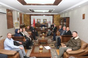 Mardin’in Turizm temsilcilerinden oluşan heyet, Mardin Artuklu Üniversitesi’nin Turizm Fakültesi bünyesinde sağlanan eğitimle, Mardin’in gastronomi, kültür ve inanç turizmine yönelik çalışmalara akademik destek vererek Mardin’in turizmdeki kalkınma sürecine lokomotif gücü olduğunu ve elde edilen bu başarılı çalışmalar kapsamında MAÜ Rektörü Prof. Dr. İbrahim Özcoşar’ı makamında ziyaret ederek, üniversitenin ve fakültenin turizme sağladığı katkılar dolayısıyla teşekkürlerini ilettiler.