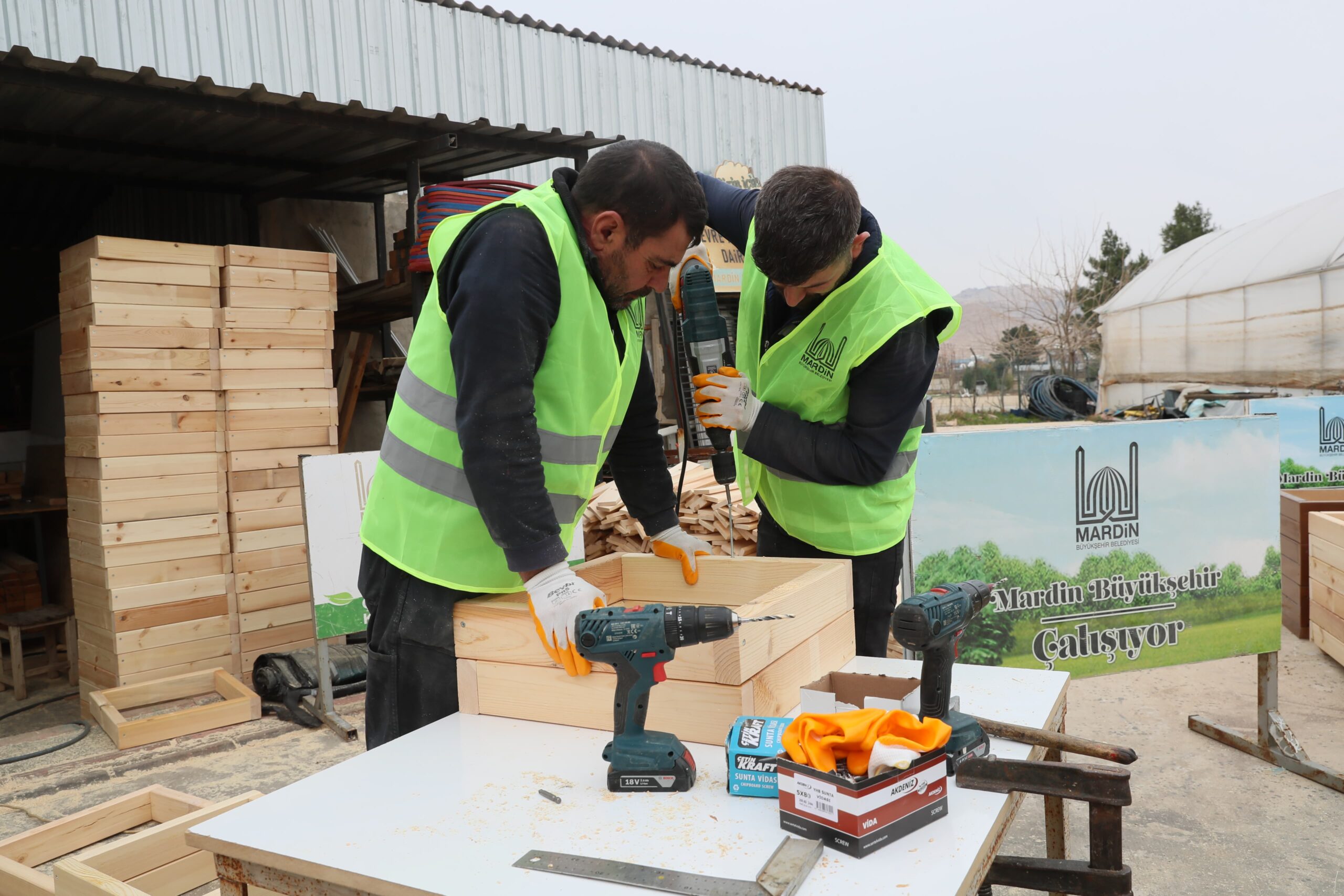 Mardin Büyükşehir Belediyesi Çevre Koruma ve Kontrol Daire Başkanlığı, şehirdeki park, bahçe, meydan ve yeşil alanların görsel estetiğini artırmak için doğal ve çevre dostu ahşap saksıların üretimine Büyükşehir Belediyesi ahşap doğrama atölyesinde başladı.