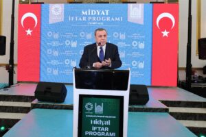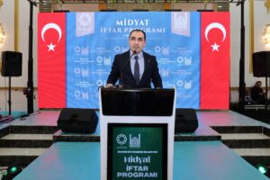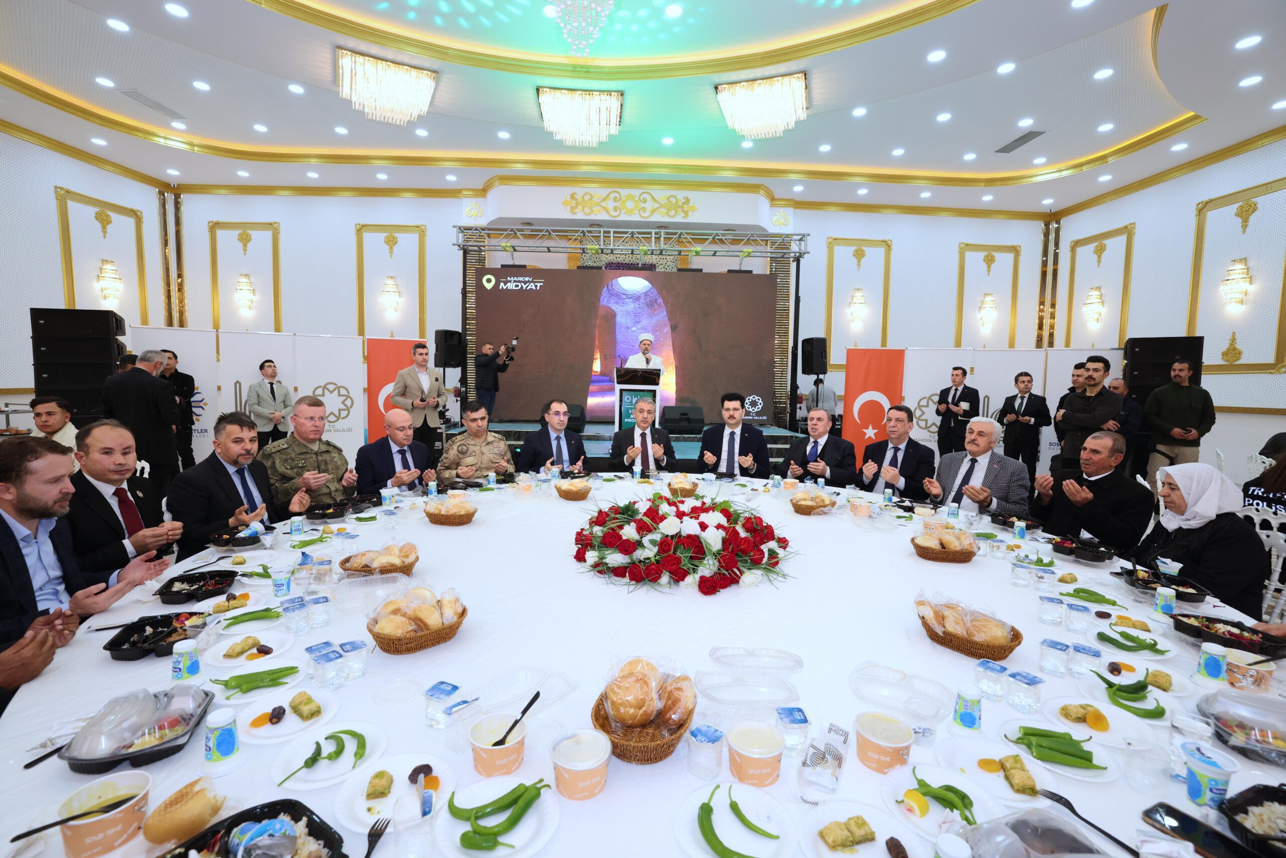 Kur’an-ı Kerim tilaveti ile başlayan programda, Midyat Belediye Başkanı Veysi Şahin ve Midyat Kaymakamı Ömer Faruk Özdemir açılış konuşmalarını yaptı. Ardından Midyatlılara hitap eden Vali ve Büyükşehir Belediye Başkan Vekili Akkoyun, Ramazan ayının manevi ikliminde birlik olmanın önemine vurgu yaparak, “Başı rahmet, ortası mağfiret, sonu ise cehennem azabından kurtuluş olan Ramazan-ı Şerife erişmenin huzuru içerisindeyiz. Bugün burada, aynı sofranın etrafında bir araya gelerek birliğimizi ve beraberliğimizi pekiştirmenin mutluluğunu yaşıyoruz.Aziz Milletimiz Ramazanı sevinç, kardeşlik ve muhabbet gibi bizi biz yapan değerlerin en güçlü şekilde yaşandığı bir rahmet mevsimi olarak görmektedir. Yüz yıllardır aynı kaderi paylaşan bizler bugün burada gönül birlikteliği kurduğumuz kardeşlik ve bereket sofralarımızda bir araya gelerek birbirimize kenetleniyoruz. Yıllardır bu kadim topraklarda, devletimizin, bayrağımızın ve ezanımızın yanında sağlam bir duruş gösterdiğiniz için tarafınızı huzur, güven ve istikrardan yana seçtiğiniz için her birinize ayrı ayrı teşekkür ediyorum. Sizlerle, birlik, beraberlik, kardeşlik bayrağını taşıyıp gelecek nesillere güvenle teslim edeceğiz inşallah” ifadelerini kullandı.
