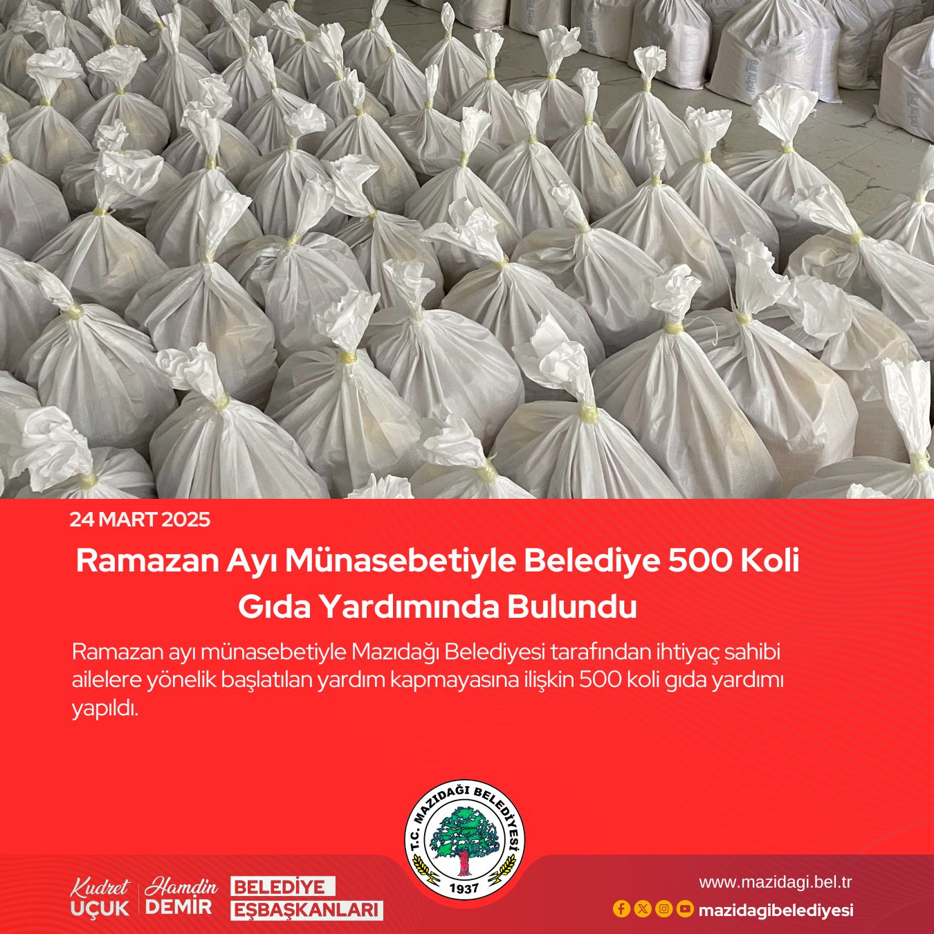 Mazıdağı Belediye Eşbaşkanları Kudret Uçuk ve Hamdin Demir, Ramazan’ın paylaşma ve yardımlaşma ayı olduğunu belirterek, “Bu mübarek ayda ihtiyaç sahibi vatandaşlarımıza el uzatmak, toplumumuzdaki dayanışmayı güçlendirmek amacıyla böyle bir organizasyon düzenledik. Toplumumuzun birlik ve beraberlik içinde olması, hepimizin daha güçlü olmasını sağlar. Ramazan, bir arada olmanın ve yardımlaşmanın simgesidir” dedi.