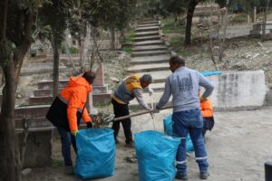 Ekipler, mezarlıklarda düzenli çevre düzenlemesi ve temizlik yaparken, bayram hazırlıkları çerçevesinde yabani ot biçme, yolları temizleme, çöpleri toplama, haşereyle mücadele kapsamında ilaçlama, ağaç budama ve genel temizlik işlemleri gibi kapsamlı çalışmalar yürütüyor.