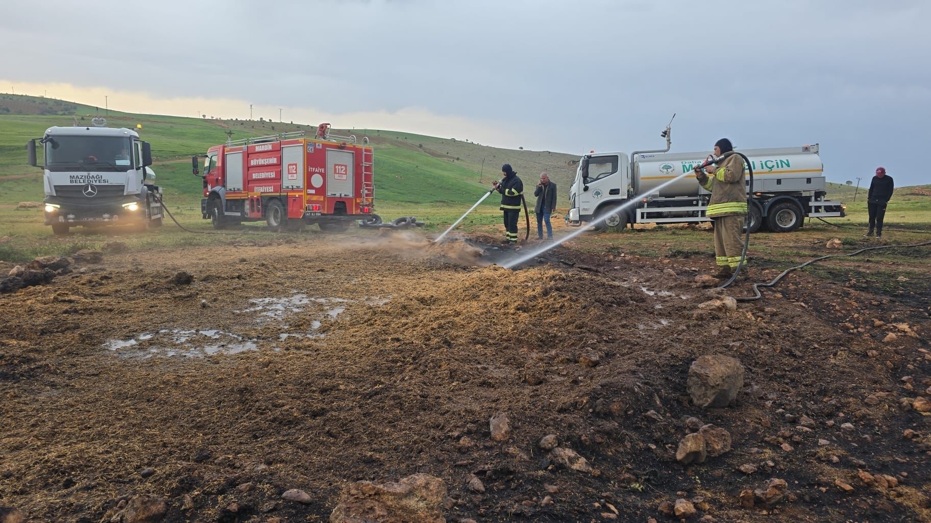 Mazıdağı İlçe merkezine bağlı kırsal Yücebağ Mahallesi’nde öğlen saatlerinde saman alanında bilinmeyen bir nedenden kaynaklı yangın çıktı. Vatandaşların haber vermesi üzerine bölgede bulunan Mardin Büyükşehir Belediyesi İtfaiye ekibi ile Mazıdağı Belediyesi ekibi yangına etkin bir şekilde müdahale etti. Ekipler, yangının büyümesini engelleyerek çevredeki yapıların zarar görmesini önledi.