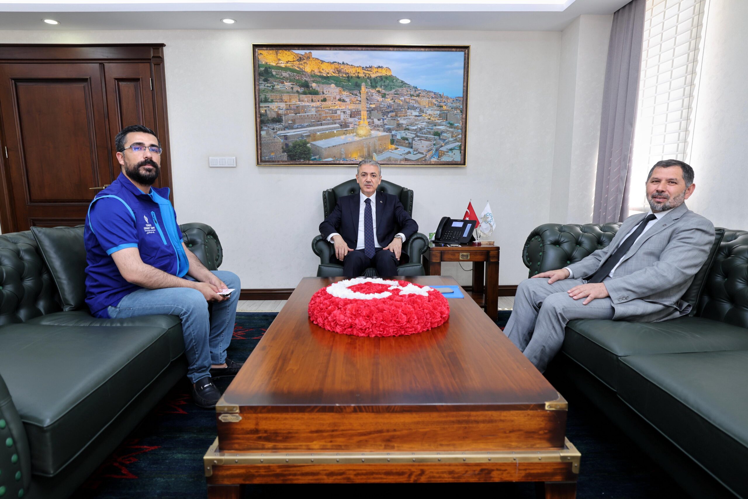 Vali Akkoyun, İl Müftüsü Dr. Enver Türkmen ve Türkiye Diyanet Vakfı Görevlisi Muhammet Koldemir’i Valilik Makamı’nda kabul etti. Görüşmede, TDV’nin yurt içinde ve yurt dışında yürüttüğü kurban organizasyonları hakkında bilgi verildi.