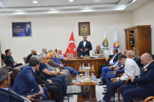 Mardin TSO Yönetim Kurulu Başkanı Hatip Çelik, MARİŞ heyetine kentteki ticaret hayatına ilişkin bilgilendirme yaptı. Kentin en acil ihtiyacının hızlı demiryolu hattı olduğunu ifade eden Hatip Çelik, aynı zamanda Mardin Lojistik Merkezi ile Suriye ve Irak gümrüğünde yaşanan sorunların çözümü noktasında lobi faaliyetlerinin daha da artırılması gerektiğini belirtti. Başkan Çelik, “İhracatta rekabet gücümüzü düşüren nedenlerin başında yüksek lojistik maliyetler geliyor. Sanayicilerimizin maliyetlerinin sürdürülebilir seviyelere indirgeyebilmemiz için hızlı tren hizmetine erişimi bir an önce sağlanması gerekiyor. Özellikle Mardin ile Mersin Uluslararası Limanı ve İskenderun Limanı’na bağlanması hususunda devam eden çalışmaların hızlandırılması için lobi faaliyetlerimizi artırmalıyız. Tek önceliğimiz Mardin’in geleceğidir. Bizim gibi kurum ve kuruluşların ortak paydası Mardin’dir. Kadim şehrimizi istişare, koordinasyon ve ortak akla dayalı bir sinerji ile daha da güçlendirecek çalışmalarımızı hızlandırmalıyız” dedi.