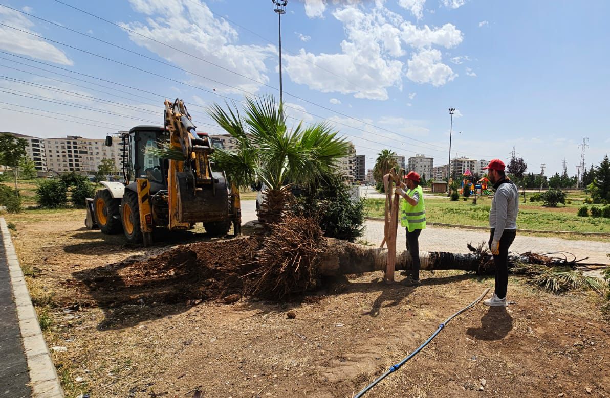 Olayın ardından vatandaşların ihbarı üzerine harekete geçen Mardin Büyükşehir Belediyesi, yanan ağacın yerine aynı gün içerisinde yeni bir palmiye ağacı dikti.