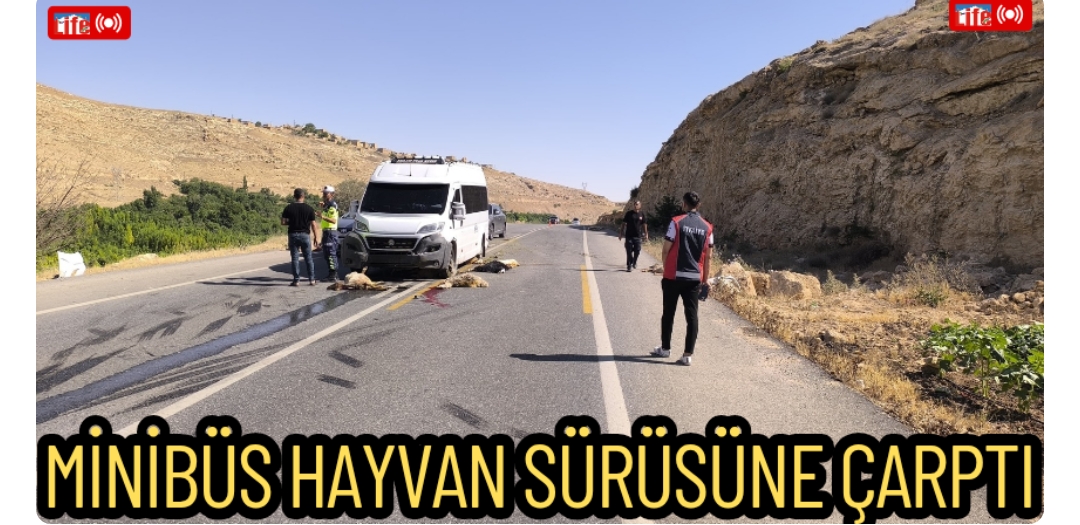 Sürücüsünün kimliği ve aracın plakası henüz belirlenemeyen minibüs, aniden yola çıkan hayvan sürüsüne çarptı.