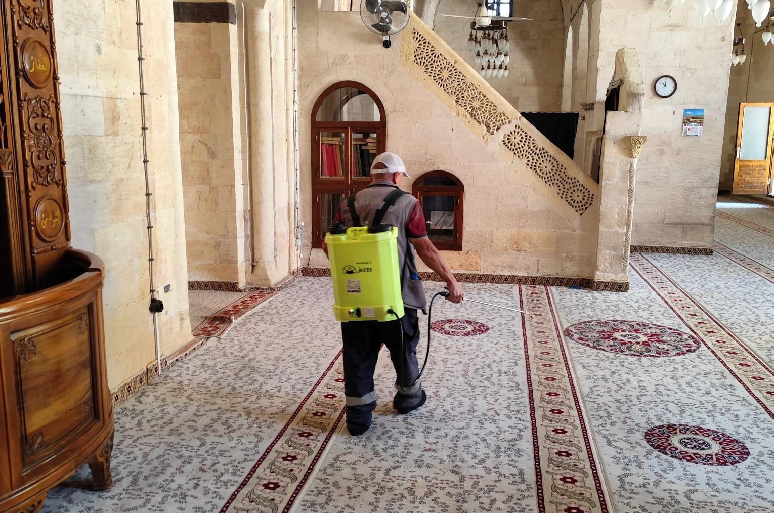 Bayram öncesi vatandaşların daha hijyenik, temiz ve huzurlu bir ortamda ibadet edebilmesi amacıyla yürütülen çalışmalarda ekipler, camilerin tüm bölümlerini detaylı şekilde temizledi.