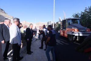 Mardin Valisi ve Büyükşehir Belediye Başkan Vekili Tuncay Akkoyun, Yeşilli Kaymakamı Mehmet Sadık Kılıç, Yeşilli Belediye Başkanı Hayrettin Demir ve beraberindeki heyetle birlikte Yeşilli İlçesi Gül Mahallesi’nde Mardin Büyükşehir Belediyesi tarafından sürdürülen asfalt çalışmalarını yerinde inceledi.