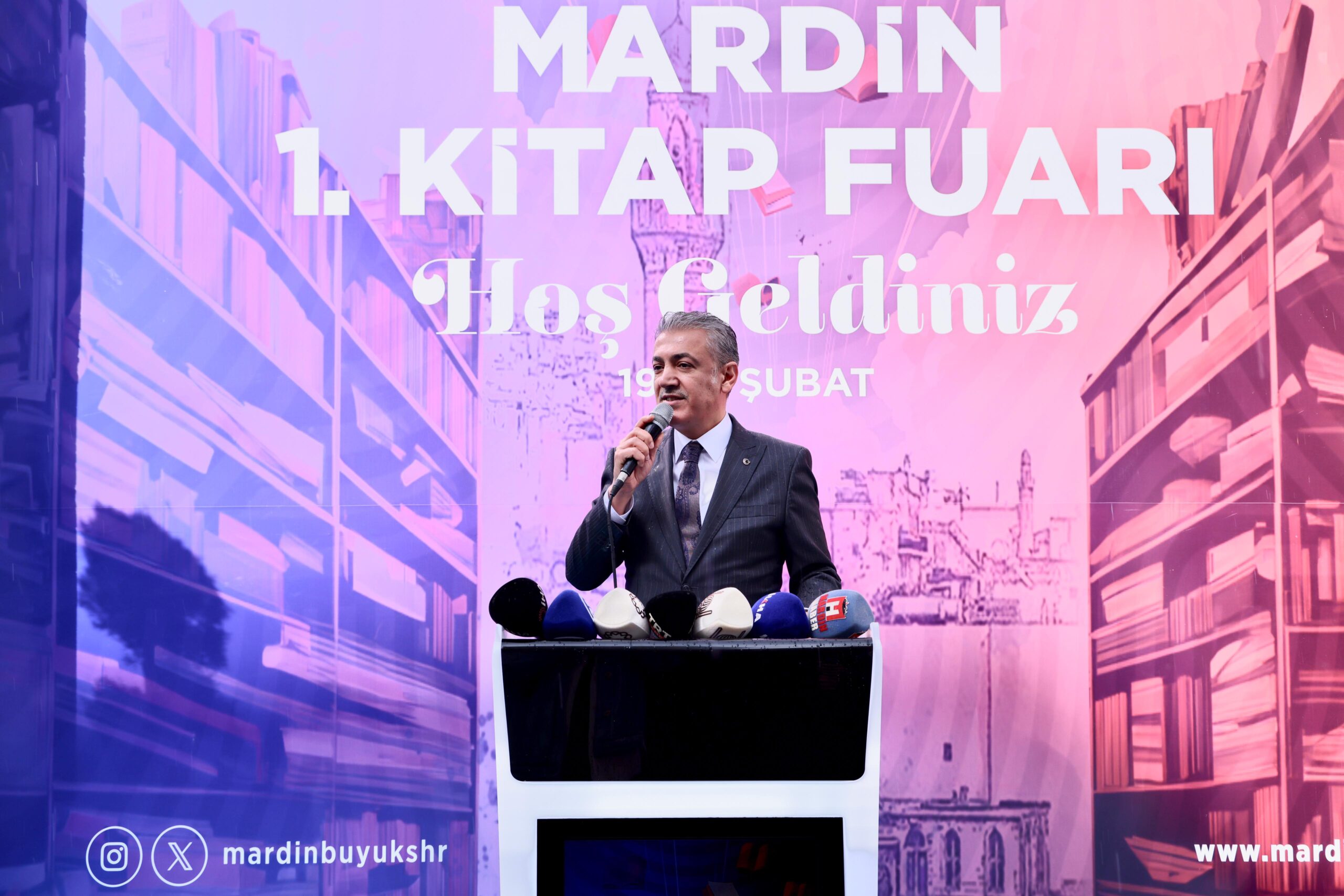 Kitap Fuarının açılışını gerçekleştirmekten büyük mutluluk duyduğunu söyleyen Vali Akkoyun, ‘‘Fuar için şehrimize gelen yayınevlerine, kıymetli yazarlarımıza tüm kitap severlere Mezopotamyanın kalbi, hoşgörü ve medeniyetler şehri Mardin’e hoş geldiniz sefalar getirdiniz diyorum.’’ dedi.