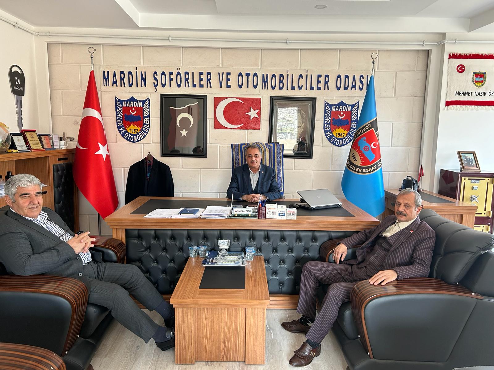 Mardin Şoförler ve Otomobilciler Odası başkanı Mehmet Nasır Öztap’ı ziyaret ederek Mardin şoförlerin ve sektörün son durumu hakkında bilgi alarak istişarelerde bulundurlar.