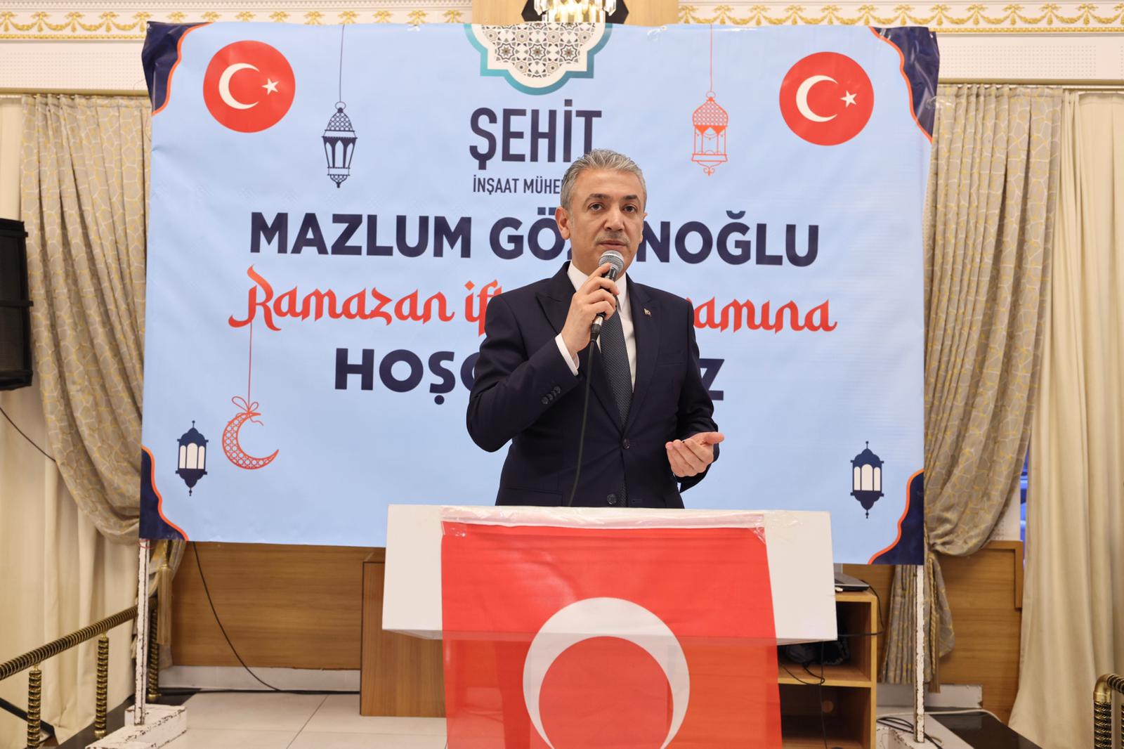 İftar programında vatandaşlara hitap eden Vali Akkoyun; “Aziz Şehidimiz Mazlum Gözenoğlu’nu ve bu program vesilesiyle tüm Şehitlerimizi rahmetle, minnetle ve şükranla anıyorum. Rabbim makamlarını âli eylesin. Bizlere, onların bıraktığı bu emanete sahip çıkmayı, emanetlerine layık yaşamayı nasip etsin. Şehitlerimizin aileleri, gazilerimiz bizlere emanettir, Devletimize emanettir. Devletimiz, Şehitlerimizin kıymetli aileleri, gazilerimiz ve ailelerinin hizmetindedir, emrindedir. Bugün, Şehidimiz Mazlum Gözenoğlu’nun Şehadetinin sene-i devriyesi vesileyle düzenlenen iftar programında siz kıymetli hemşehrilerimizle bir aradayız. Rabbim bu ayı güzel yaşamayı nasip etsin. Ramazan ayına ulaştırdığı gibi Ramazan Bayramına da hepimizi sağlıkla, sıhhatle ulaştırmayı nasip eylesin” ifadelerinde bulundu.