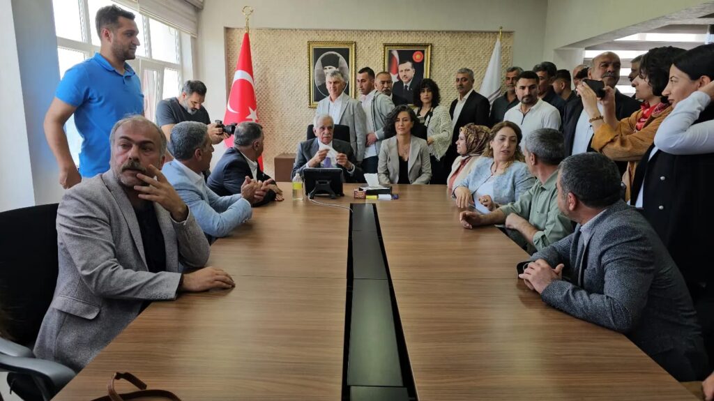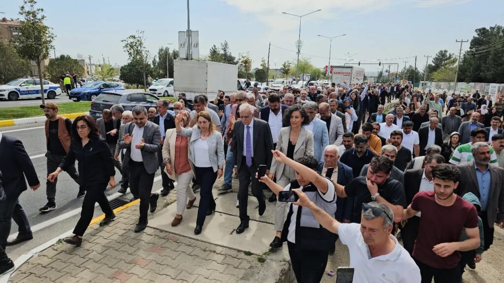 Mardin Büyükşehir Belediyesi’ni kazanan Halkların Eşitlik ve Demokrasi Partisi (DEM Parti) Belediye Eş Başkanları Ahmet Türk ve Devrim Demir, beraberlerinde yüzlerce kişi ile belediye binasına geçti. İstasyon Mahallesi’nde bulunan belediye binasına davul zurna eşliğinde geçen kitleyi belediye çalışanları karşıladı. Belediye binası önünde Eş Başkanlar Türk ve Demir, yurttaşlara hitap etti.
