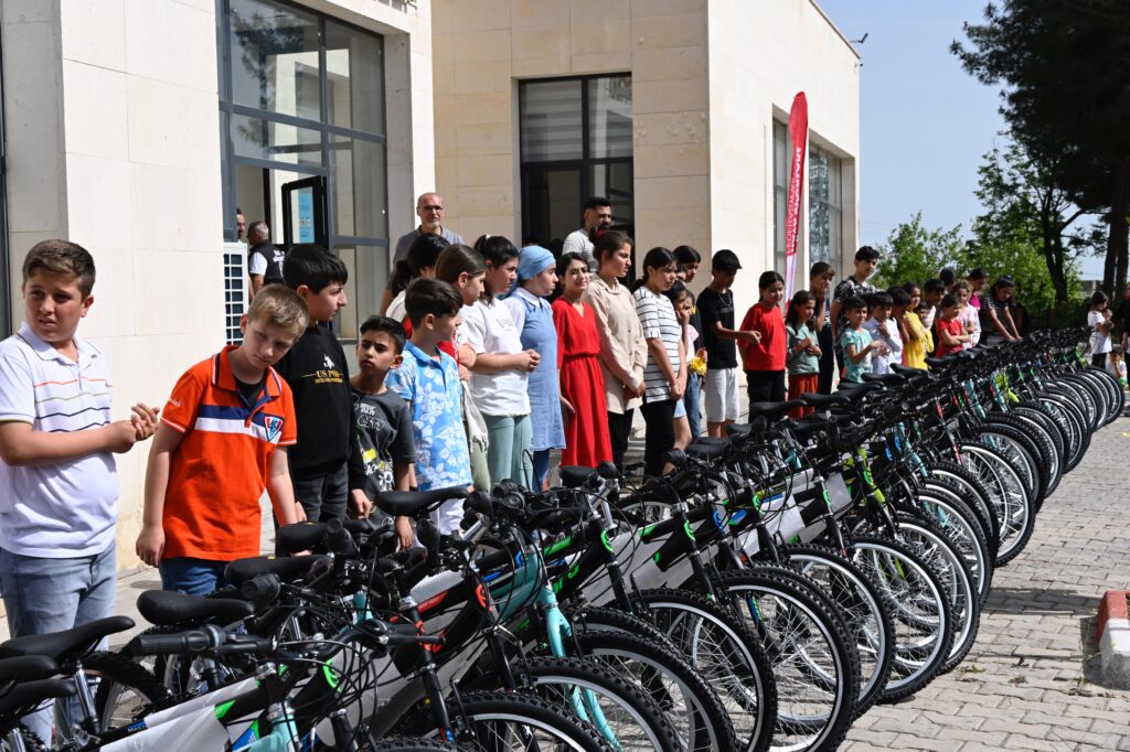 Derik İlçesinde 23 Nisan Ulusal Egemenlik ve Çocuk Bayramı ve Türkiye Büyük Millet Meclisi açılışının etkinlikleri kapsamında İlçedeki 52 öğrenciye bisiklet hediye edildi.