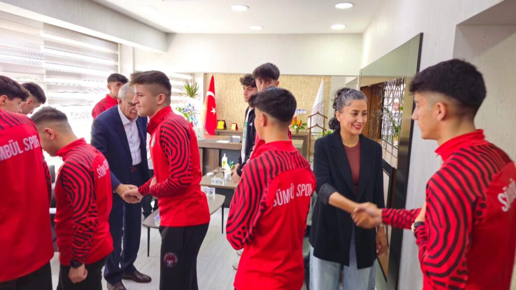 TFF U18 Bölgesel Amatör Ligi’nde mücadele eden Hakkari Sümbül Spor futbolcu ve yönetimi, Mardin Büyükşehir Belediye Eş Başkanları Devrim Demir ve Ahmet Türk’e ziyarette bulundu. Mardin’de oynayacakları maç öncesi eş başkanları ziyaret eden Sümbül Spor, eş başkanlarla makam odasında bir araya geldi. Samimi ve sıcak bir ortamda geçen ziyarette Eş Başkanlar Demir ve Türk, Sümbül Spor takımının gençlerine yarın oynayacakları maç için başarı dileklerinde bulundu.