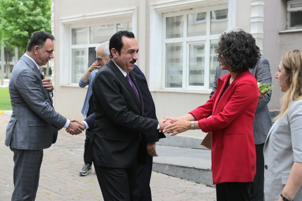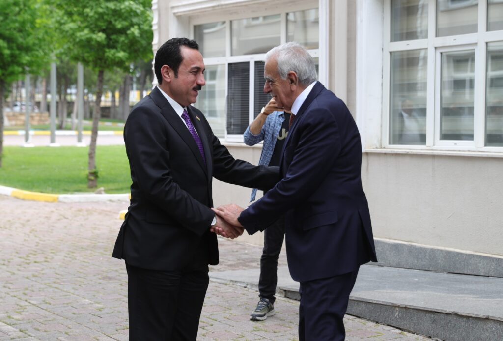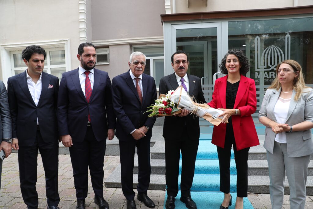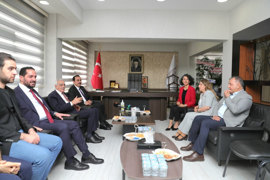 Çeşitli temaslarda bulunmak üzere bölgede bulunan Erbil Valisi Omed Xoshnaw, Erbil Belediye Başkanı Karzan Hadi, Kürdistan Parlamentosu Milletvekili Şhwan Zrari ve beraberindeki heyet, Mardin Büyükşehir Belediyesi’ni ziyaret etti. Xoshnaw ve beraberindeki heyet Eş Başkanlar Devrim Demir ve Ahmet Türk, Mardin Milletvekili Saliha Aydeniz ve Mardin Büyükşehir Belediyesi Genel Sekreteri Mehmet Raci Bilici tarafından karşılandı. Eş Başkanlar, kendilerini ziyaret eden Xoshnaw’a ve heyetine bir buket çiçek takdim etti. Eş Başkanlar ve Erbil Valisi Xoshnaw ile heyeti, daha sonra eş başkanlık makamına geçti.