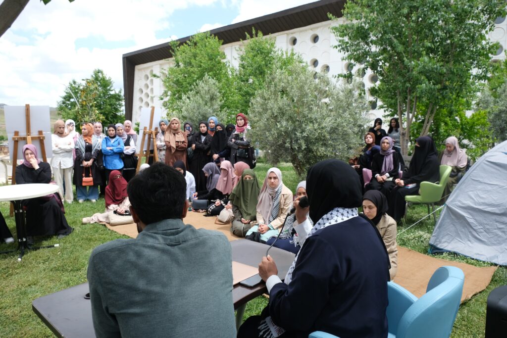 İşgalin yakın tanığı ve mağduru Dr. Shaima, öğrenci toplulukları tarafından kampüste kurulan özgürlük için ribat çadırında İsrail tarafından Gazze’de yaşatılan siyonist vahşeti ve kendi yaşadığı acıları bütün detaylarıyla öğrencilere anlattı.