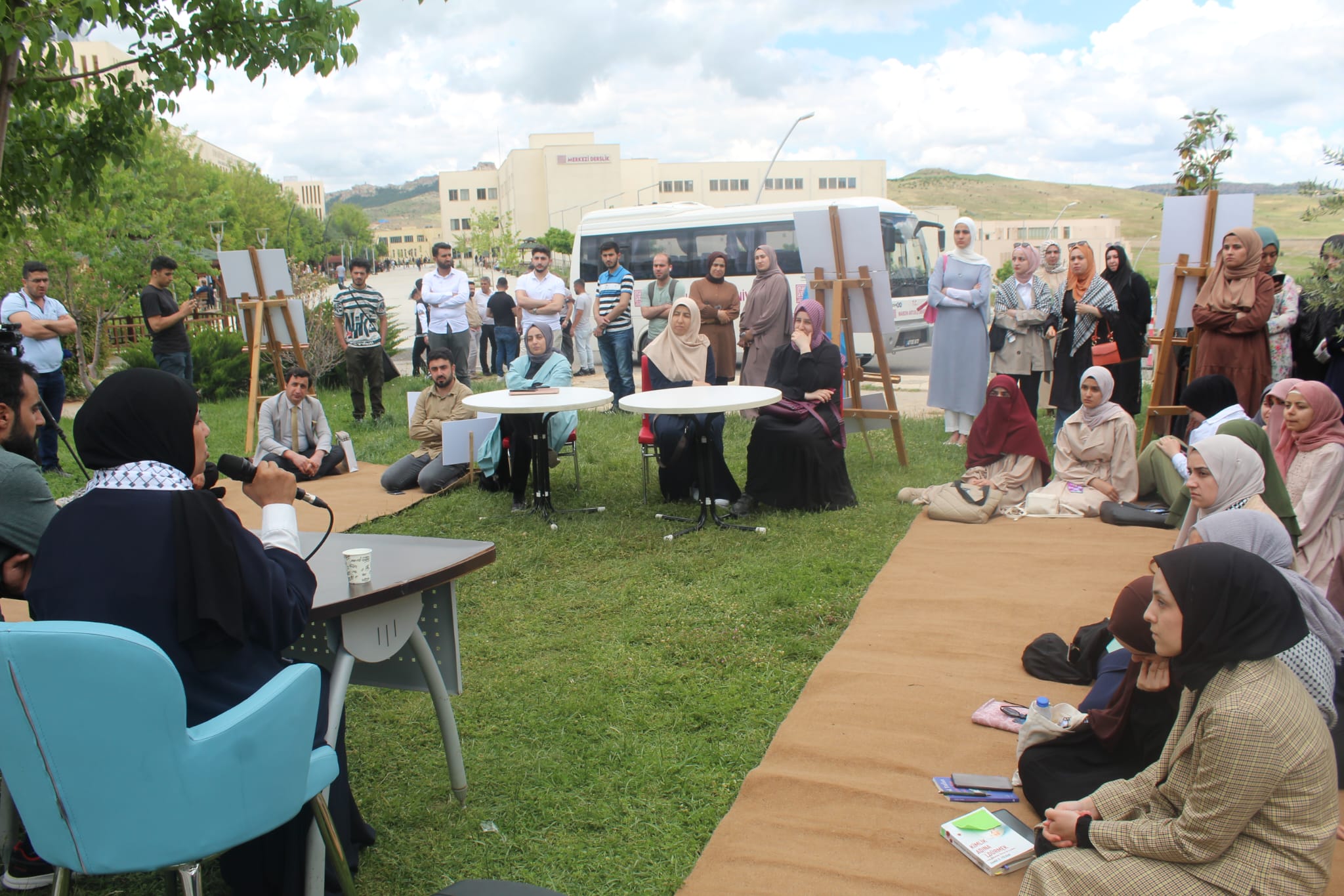 Filistin’de yaşanan İsrail zulmünü anlatan ve Gazze’ye destek olan üniversite öğrencileri çadırda Direniş Oturumlar adlı bir etkinlik de başlattılar.