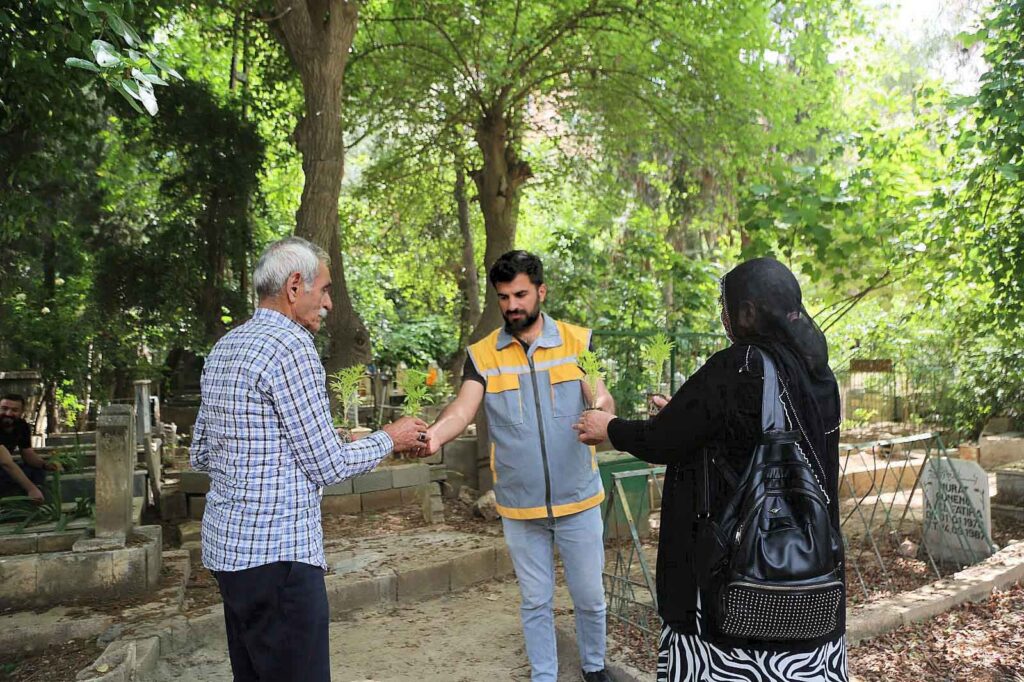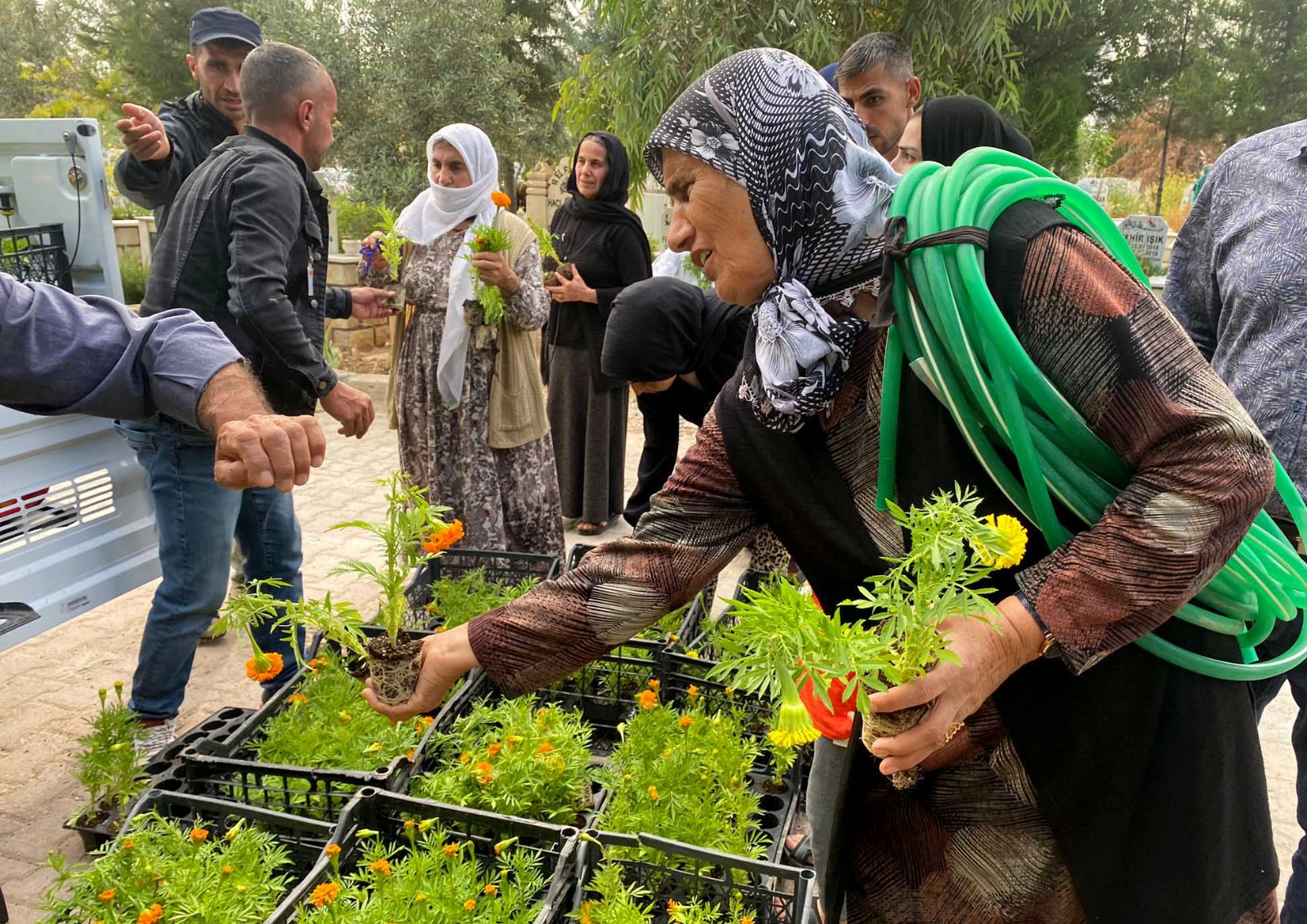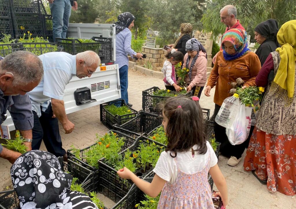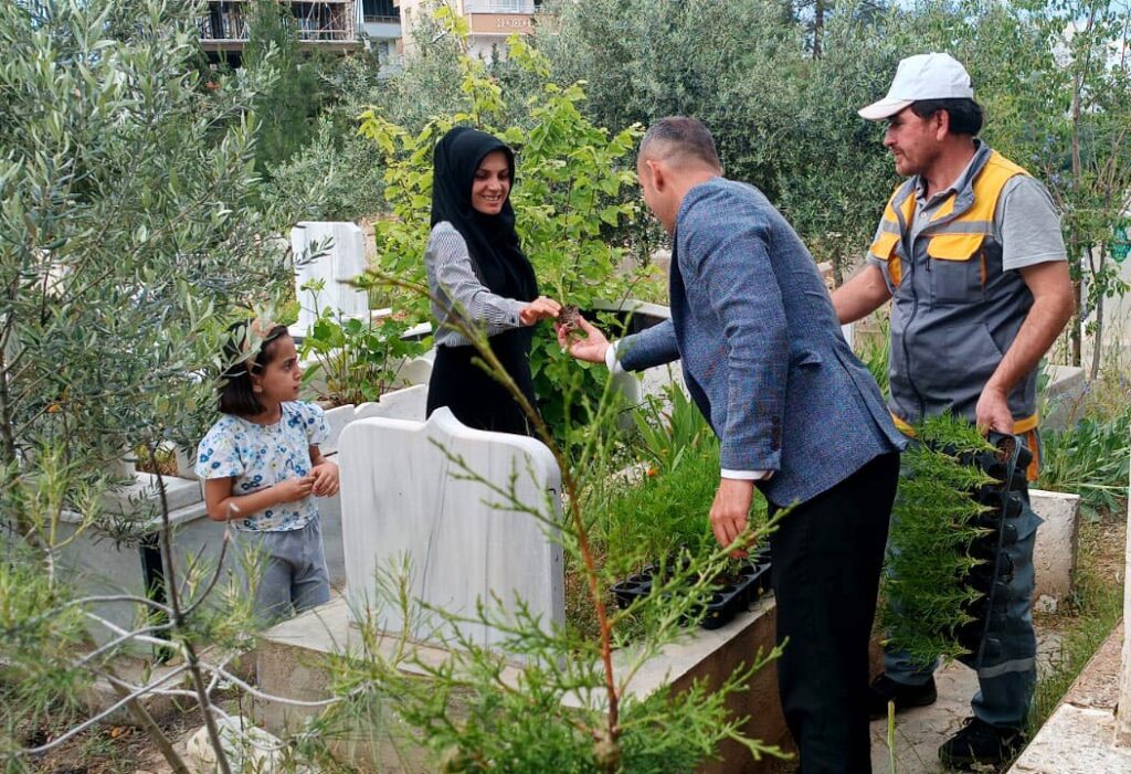 Büyükşehir Belediyesinin kendi imkanlarıyla sera alanında yetiştirdiği binlerce çiçek, Nusaybin, Artuklu, Kızıltepe, Yeşilli, Ömerli, Derik, Savur, Midyat, Mazıdağı ve Dargeçit ilçelerinde mezarlık ziyaretine gelen vatandaşlara dağıtıldı.
