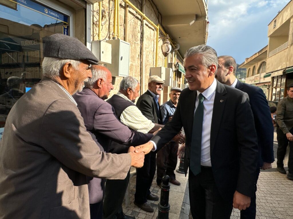 Beraberindeki İlçe Kaymakamı Çevik ve Belediye Başkanı Hamidi ile birlikte Tarihi Çarşıda esnafları ve vatandaşları ziyaret eden Vali Akkoyun, Savurlularla hasbihal ederek talep ve önerilerini dinleyerek esnaflara bereketli kazançlar diledi.