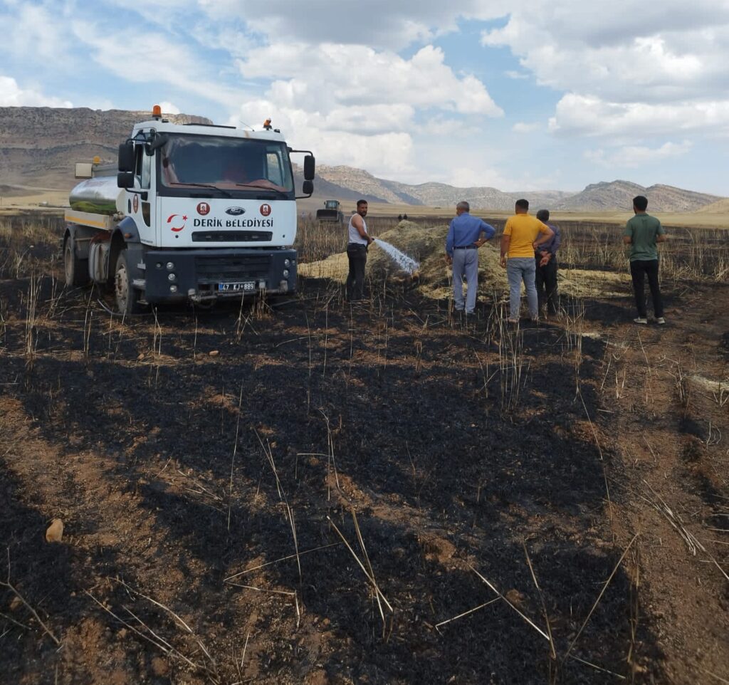 Mardin’in Derik İlçesine Bağlı Tepebağ Mahallesinde henüz bilinmeyen bir nedenden dolayı yangın çıktı