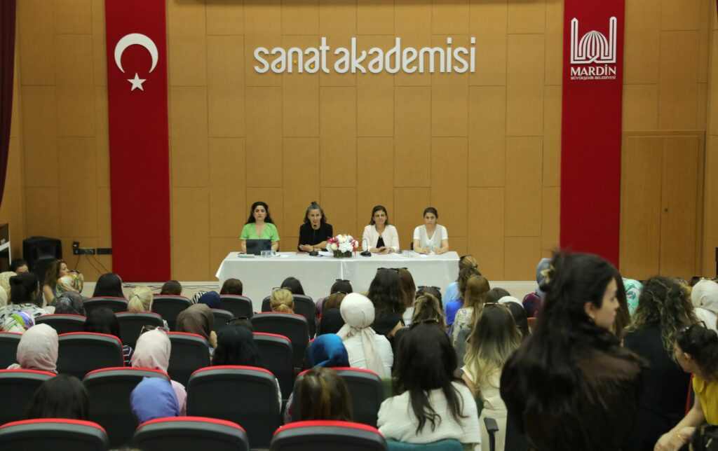 Eş Başkanı Devrim Demir, Kültür Turizm ve Sosyal İşler Daire Başkanlığına bağlı Sanat Akademisinde, Mardin Büyükşehir Belediyesi bünyesinde çalışan kadınlarla tanışma programında bir araya geldi.