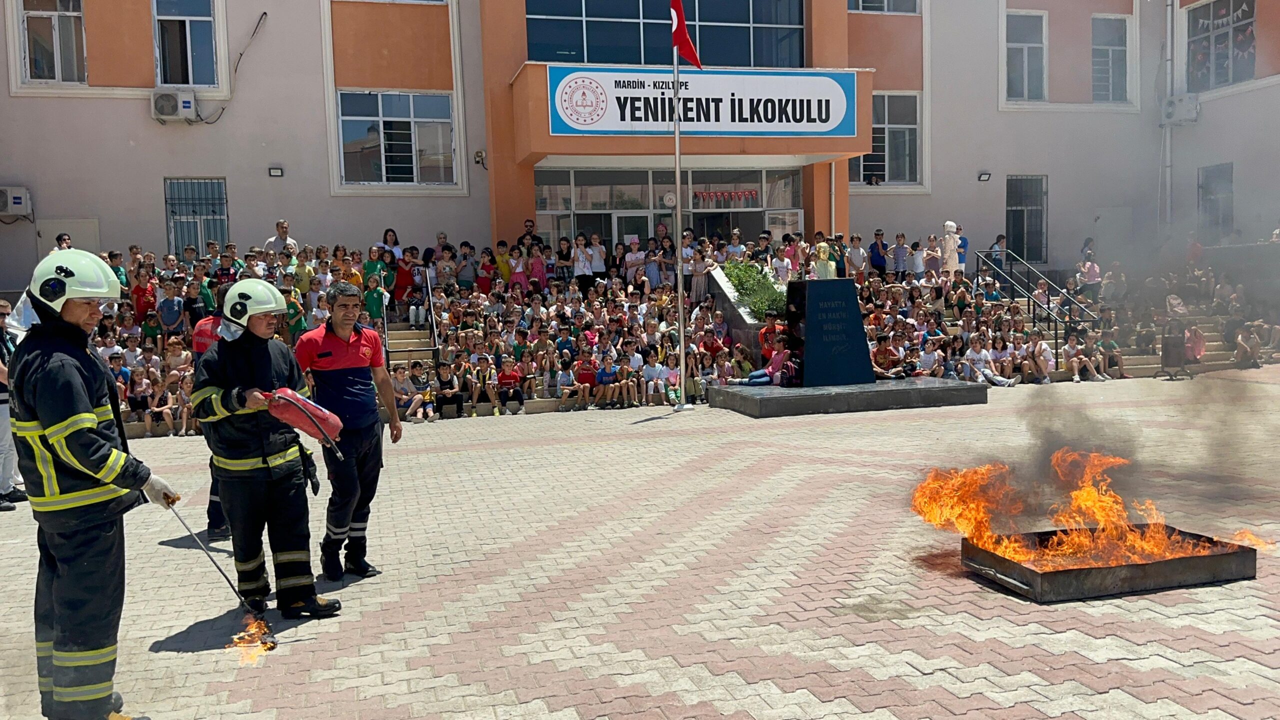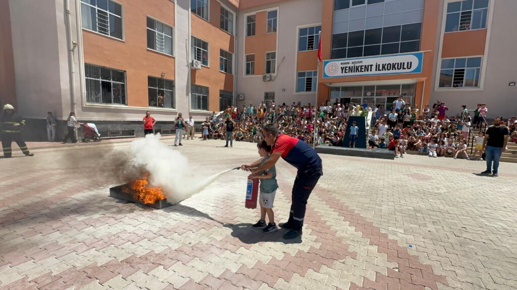 İtfaiye Daire Başkanlığına bağlı ekipler, Kızıltepe ilçesine bağlı Yenikent İlkokulu öğretmen ve öğrencilerine yönelik; yangına müdahale yöntemi, elektrik aksamı ya da klima gibi elektronik araçlarda çıkabilecek bir yangında yangın söndürme tüpü ile müdahale yöntemi, yangın söndürme dolaplarının kullanımı, LPG tüpü ve doğalgaz yangınlarına müdahale, yangın sırasında gaz akışının kesilmesi, yangın esnasında kurumda bulunanların tahliyesi ve kurtarma yöntemleri üzerine teorik eğitim verdi.