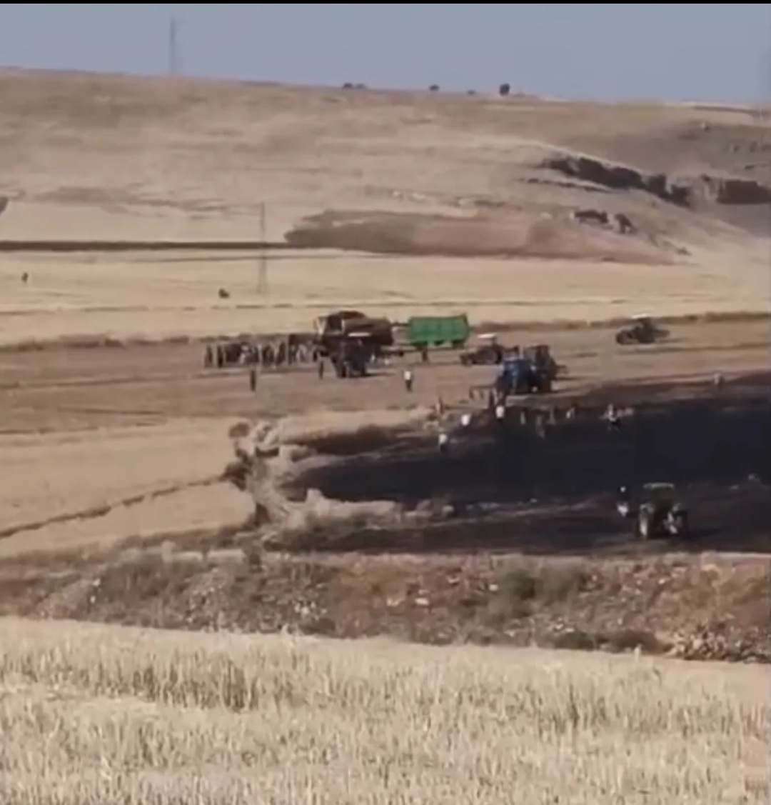 Mardin’in Mazıdağı ilçesine bağlı Ekinciler köyünde bir çiftçi buğday ekili arazisini hasat etti. Buğdayın biçim esnasında arazide bir anda alevler yükseldi. Rüzgarında etkisiyle kısa sürede büyüyen alevler, 70 dönüm buğday ekili araziyi kül etti. Tarla sahibi yangının biçerdöverden çıktığını iddia ederek, biçerdöveri taşladı. Biçerdöveri taşlayarak zarar veren tarla sahibi, biçerdöver şoförünü de darp etti. İhbar üzerine olay yerine jandarma ekipleri sevk edildi.Jandarma ekipleri olayla ilgili inceleme başlattı.