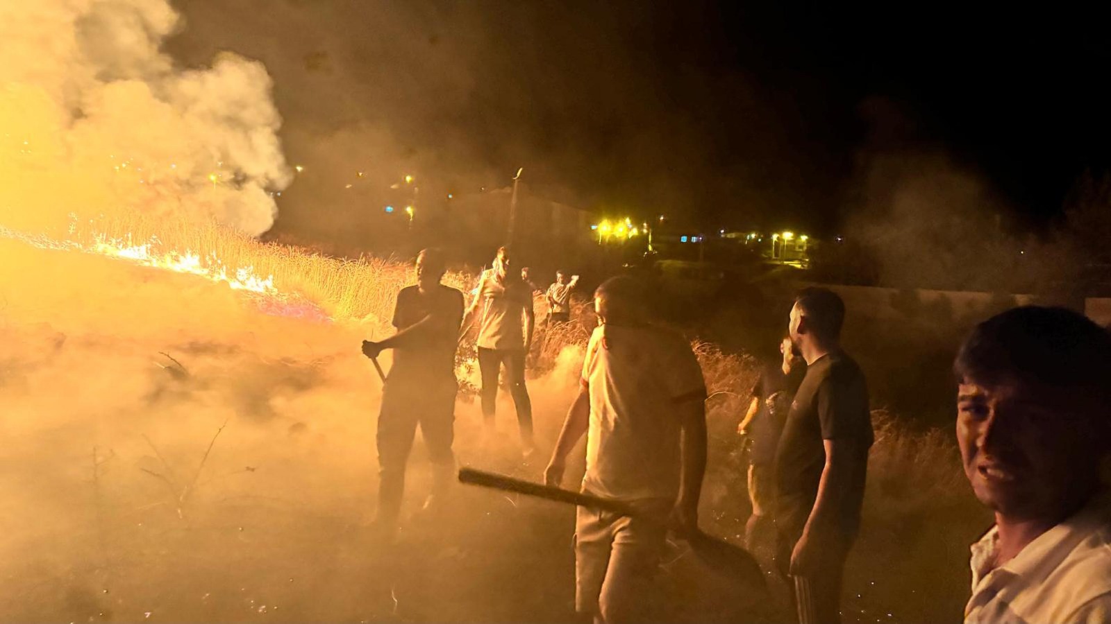 Derik İlçesinde akşam saatlerinde bilinmeyen nedenden dolayı yangın çıktı.