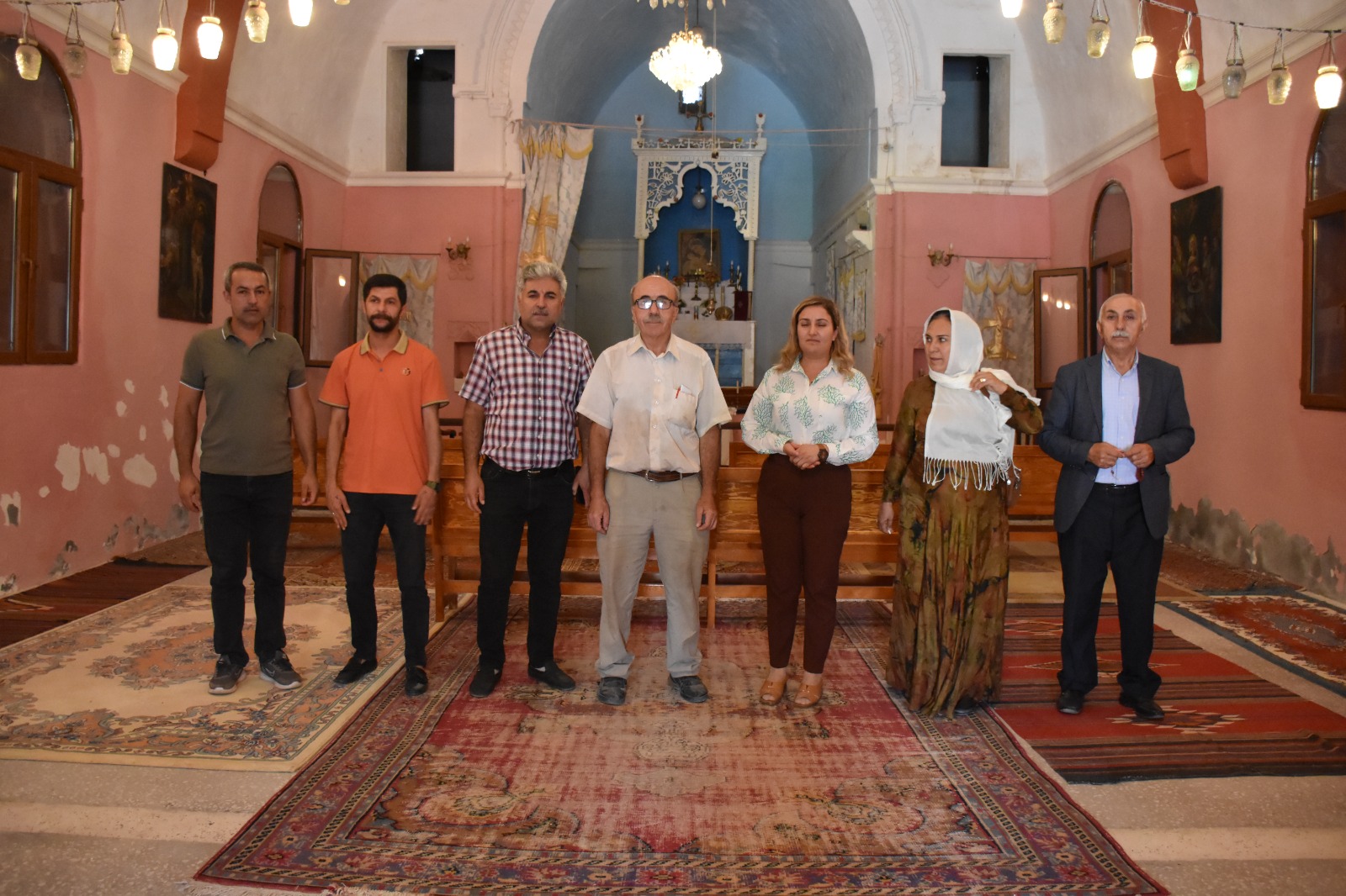 Derik’te tek kilise olan Surp Kevork Ermeni Kilisesi’ni Eş Başkan Songül Özbahçeci,Kültür ve Sosyal işler Müdürü Kadir Seydoşoğlu ve Belediye Meclis üyeleri ziyaret etti.
