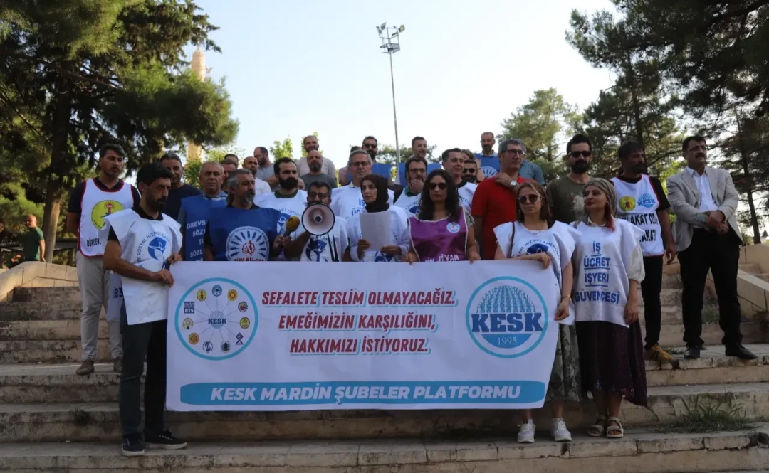 Kamu Emekçileri Sendikaları Konfederasyonu (KESK) Mardin Şubeler Platformu da “Sefalete teslim olmayacağız emeğimizin karşılığını, hakkımızı istiyoruz” şiarıyla Karayolları Parkında basın açıklaması gerçekleştirdi. Çok sayıda kamu emekçisinin katıldığı açıklamada, “Bîjî berxwedana kedkara” ve “Savaşa değil emekçiye bütçe” sloganları atıldı.