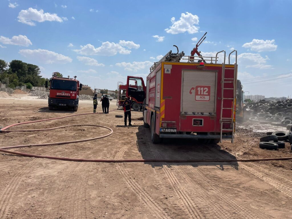 Geri dönüşüm alanında yanan atıl durumdaki malzemeler ile lastikler, kısa sürede söndürülerek kontrol altına alındı.